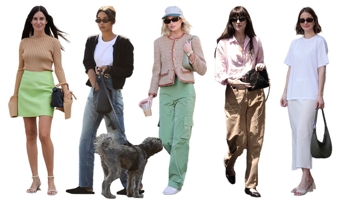 最高気温23度の日は汎用性の高いシャツが重宝します。ダコタ・ジョンソンは淡いピンクのシャツにベージュパンツを合わせ、しなやかさを獲得。程よくゆとりのある形のシャツを選ぶと、通気性が良く心地よいです。黒小物で締めればパーフェクト。