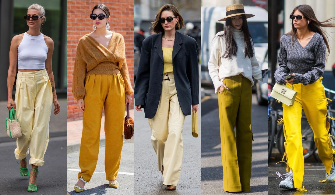 Soft "pastel yellow" pants can be used as an extension of beige, adding a touch of suppleness. We've picked out some outfits that have a slightly feminine feel.