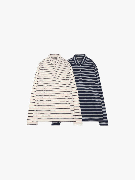 Navy and blue colors give a clean finish to yellow pants. A refreshing color block coordination gives off a clean feeling.