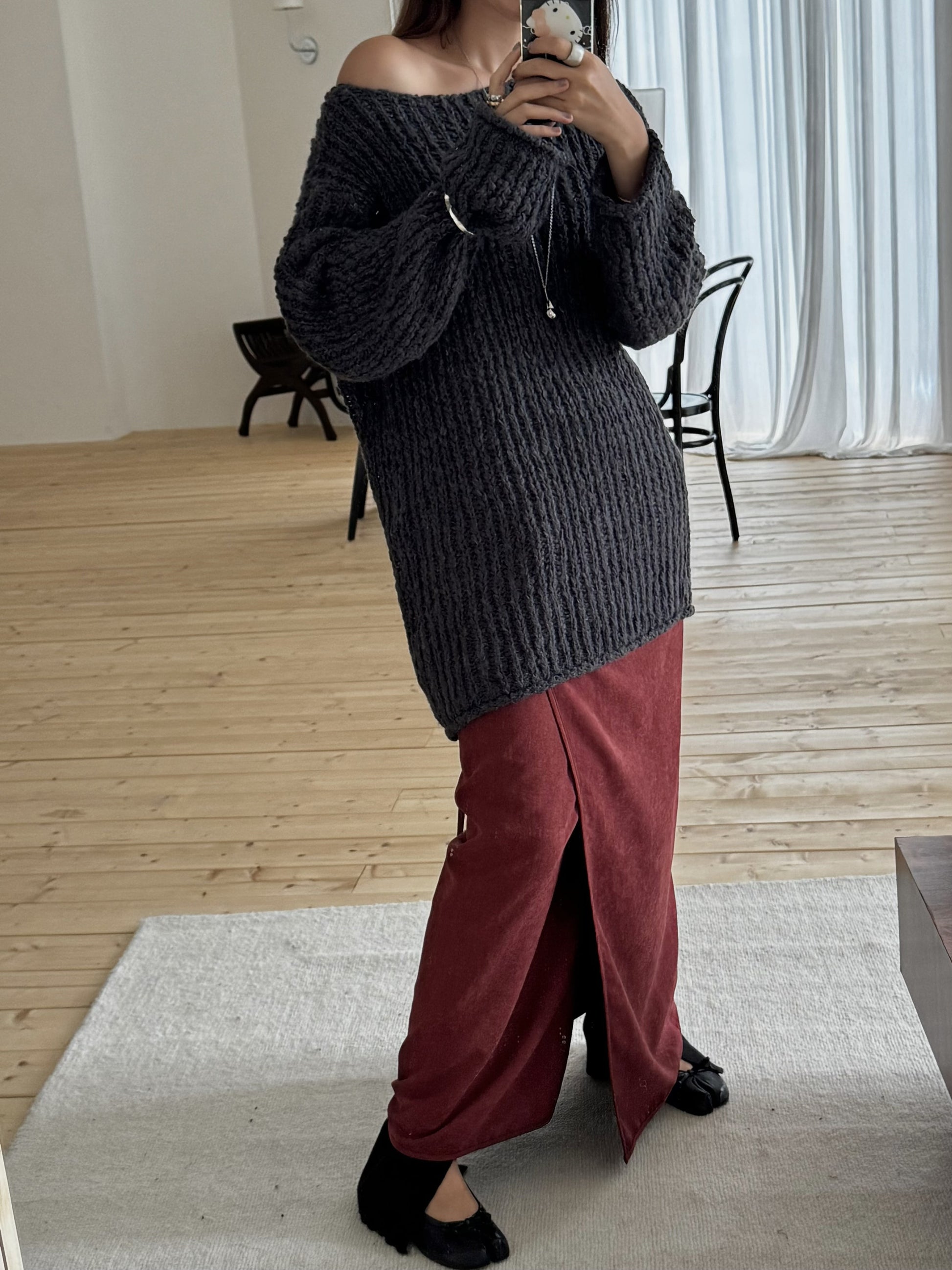- 秋のムードと共に洗練されたデザインに完成したアークラップスカートです