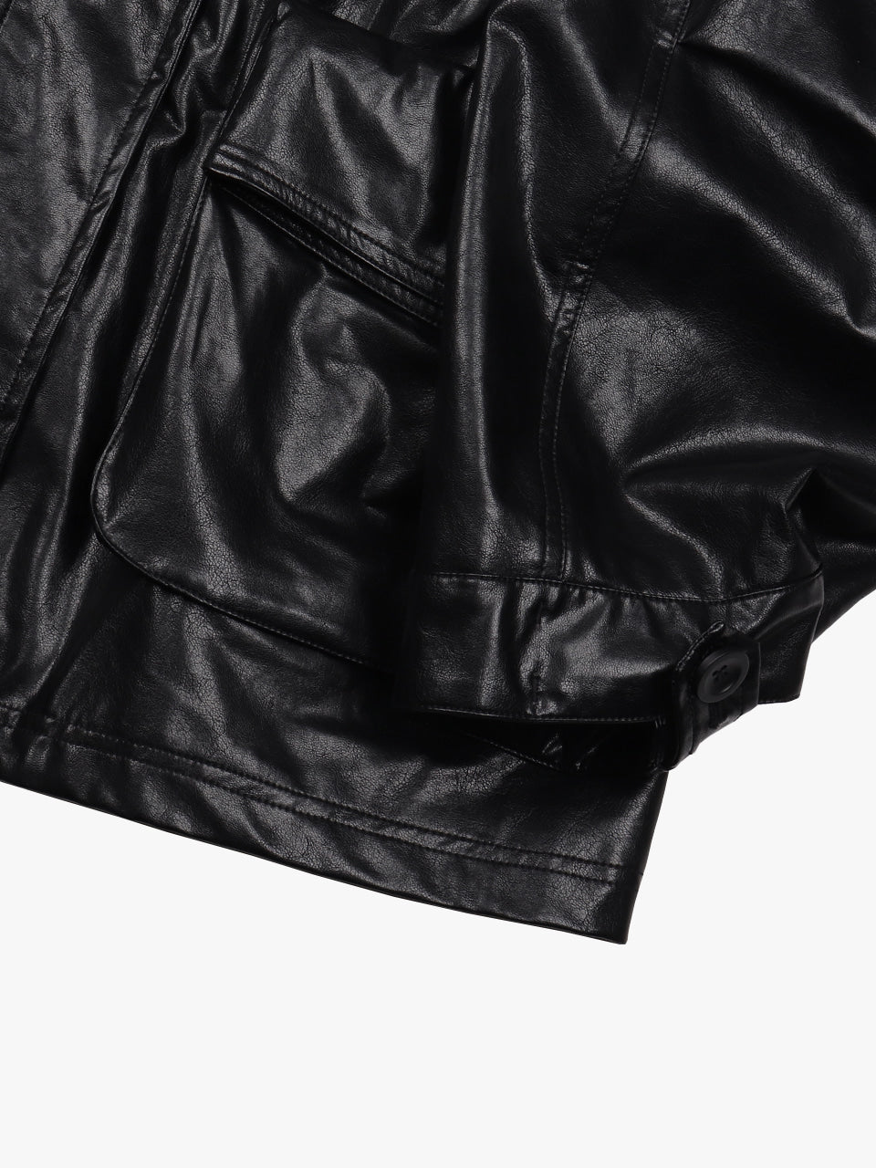 - ルーズなオーバーサイズフィットと折ったようなビッグポケットのディテール素敵なムードを与えるレザーミリタリーです