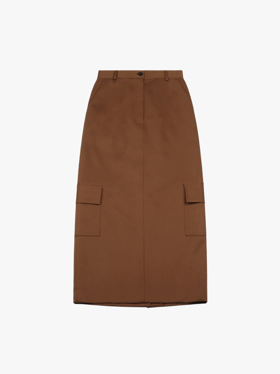 - 密度感のある生地で、シルエットが崩れずきれいに落ちるスカートです。