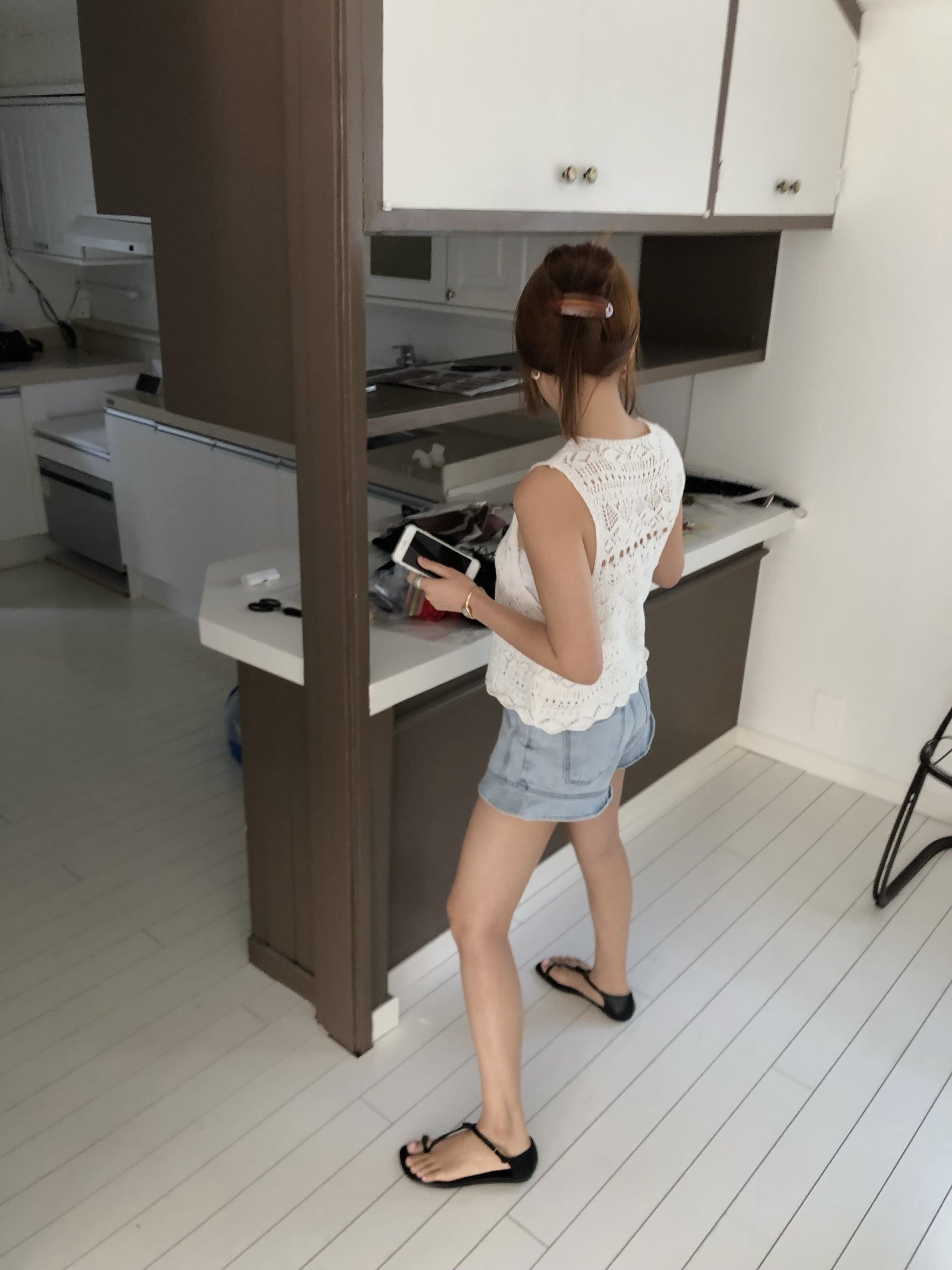 - The cut-off hem detail creates a casual yet trendy look.