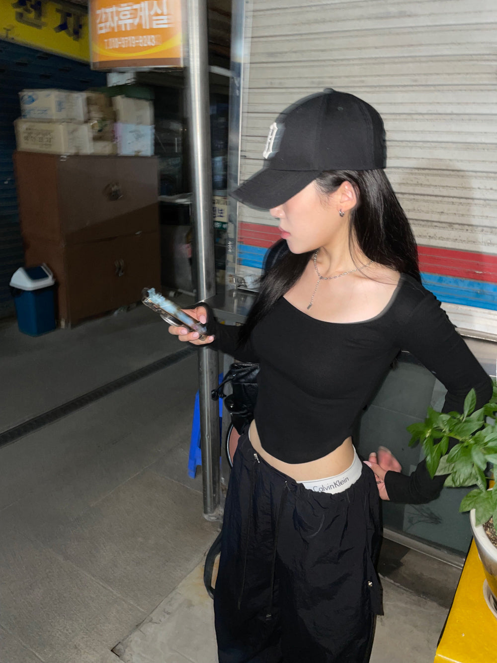 BASIC ROUND NECK LONG SLEEVE -BLACK
