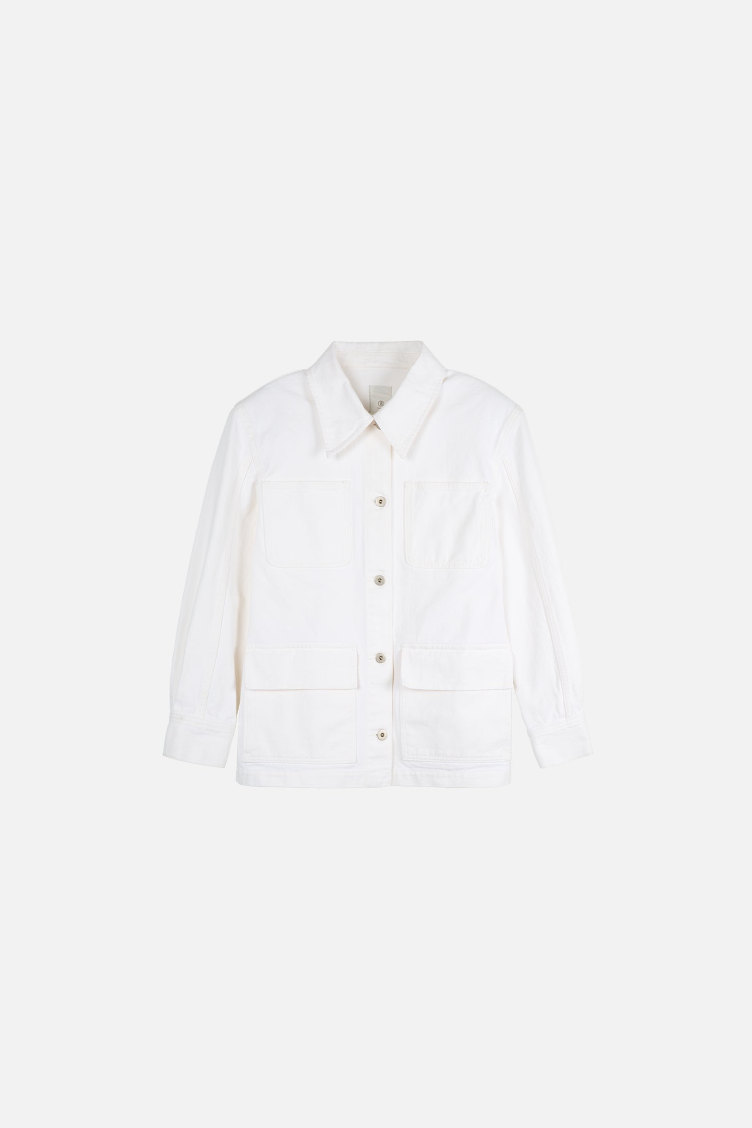 This jacket features striking big pocket details on the front, and can be worn as a set with curly wide denim pants for a stylish look.
