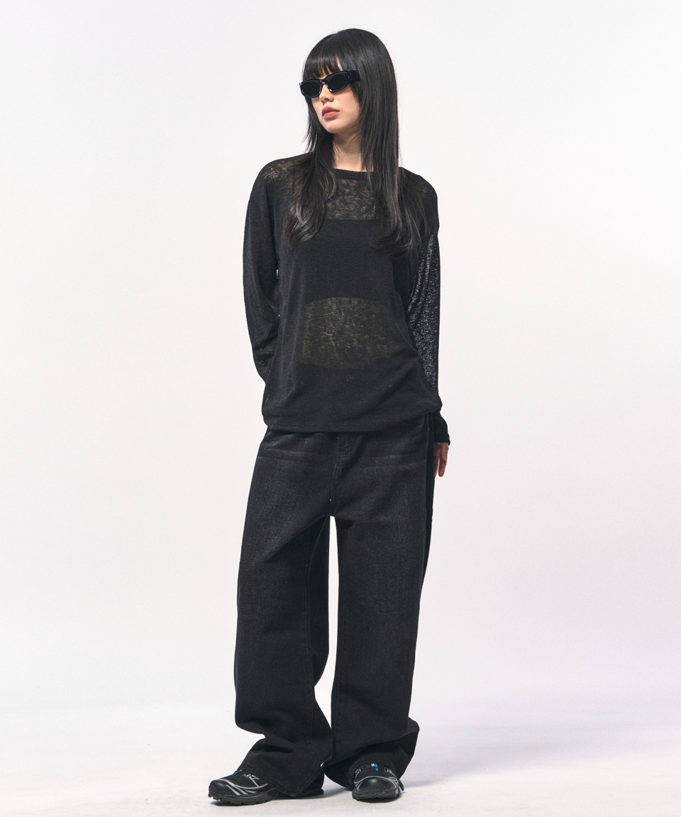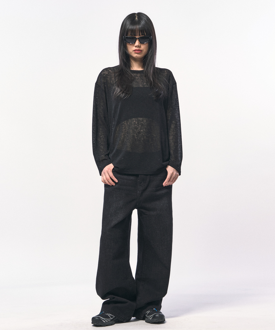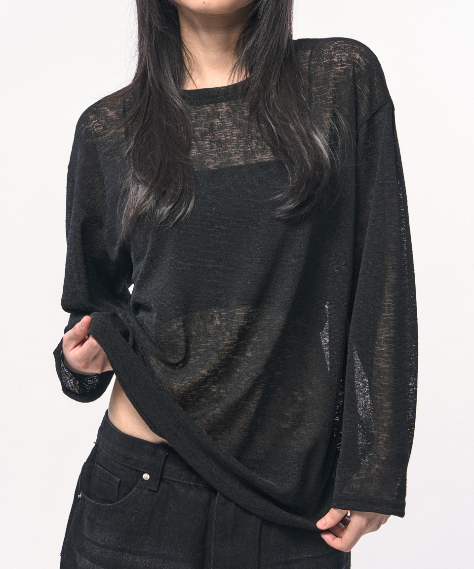 【C Wear シーウエア】SEE-THROUGH LONG SLEEVE T-SHIRT BLACK