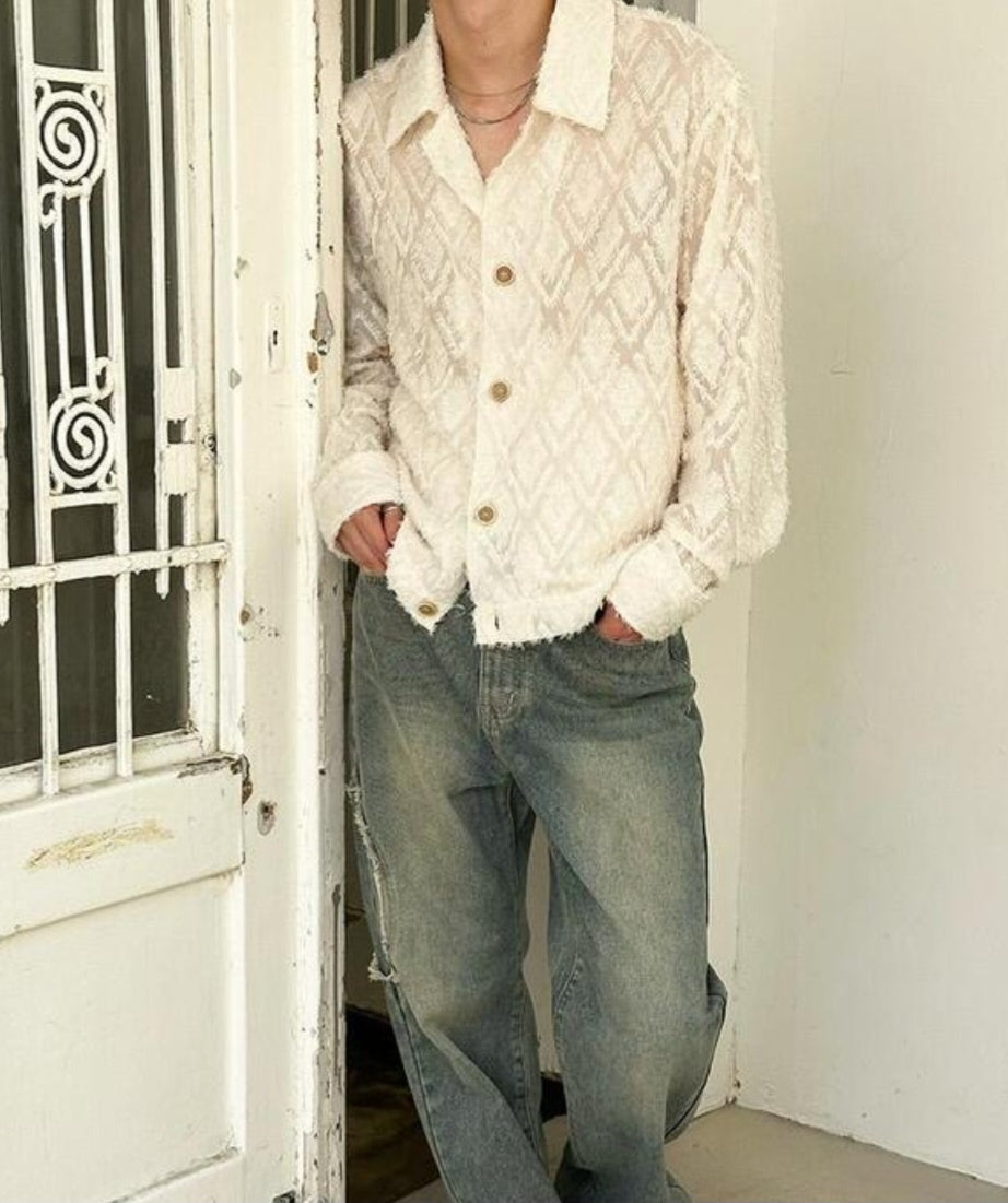 The combination of ribbed knit and sash knit creates a unique shadow effect, making this a simple yet striking piece.