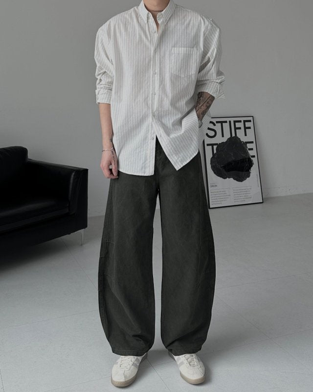 -These wide-fit pants feature a stonewashed finish and natural puckering details along the seams.