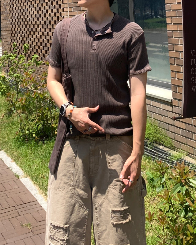 A stylish summer knit polo with beautifully detailed vertical ribbing.