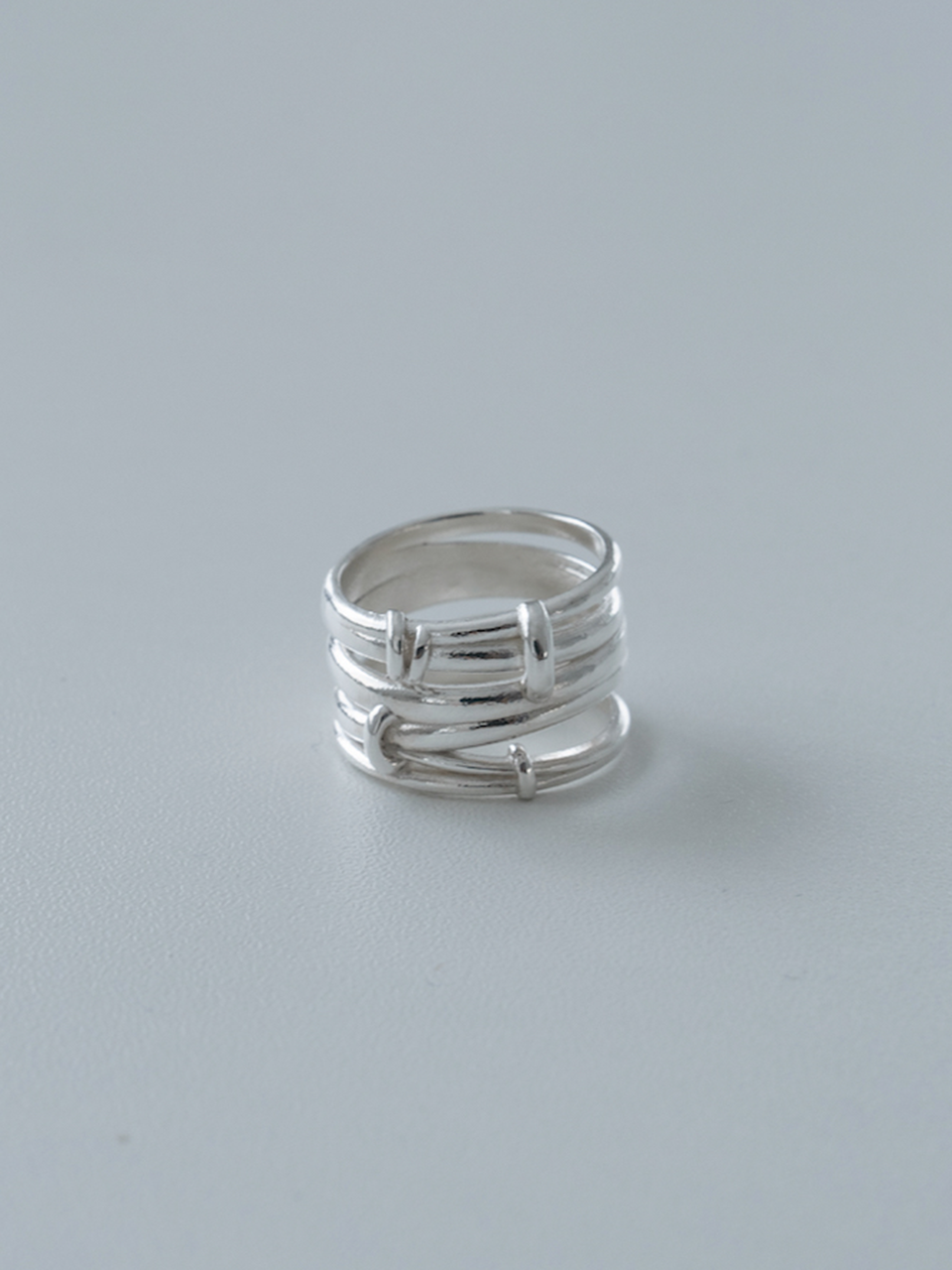 The Stack Ring is a minimalist silver ring with a form that resembles multiple overlapping lines.Even when worn alone, it creates a natural three-dimensional effect on your fingertip.