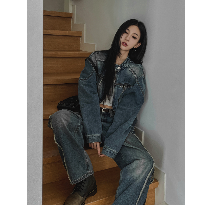 Distressed Line Denim Set-up