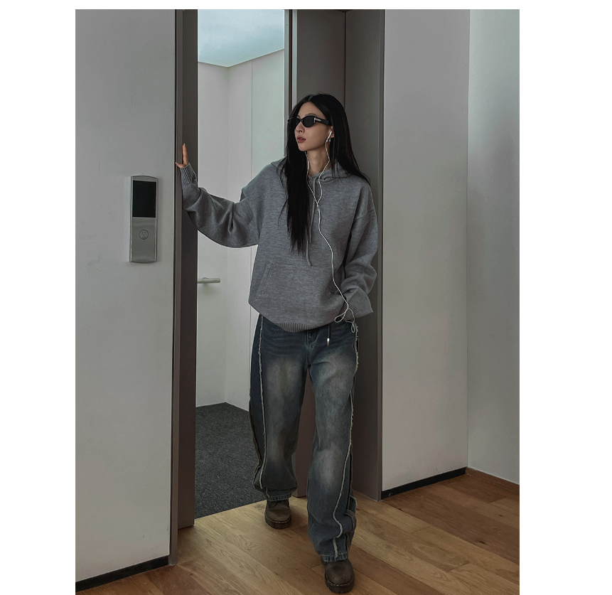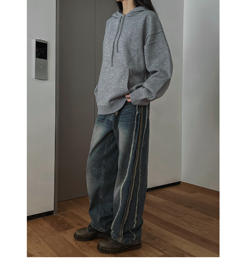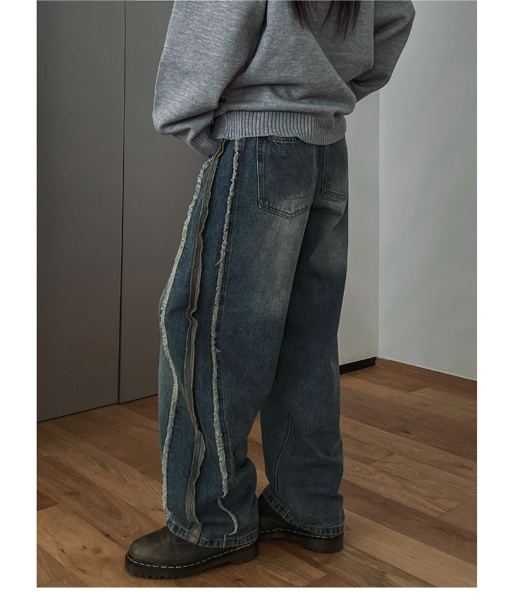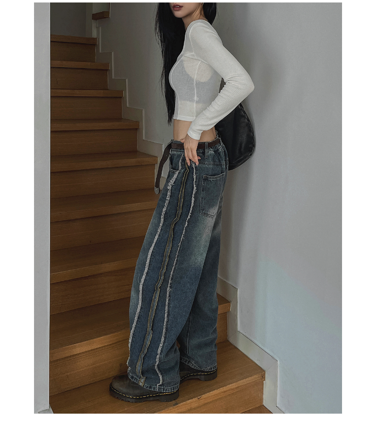 Pants: High waist / Wide straight / Side line / Vintage wash