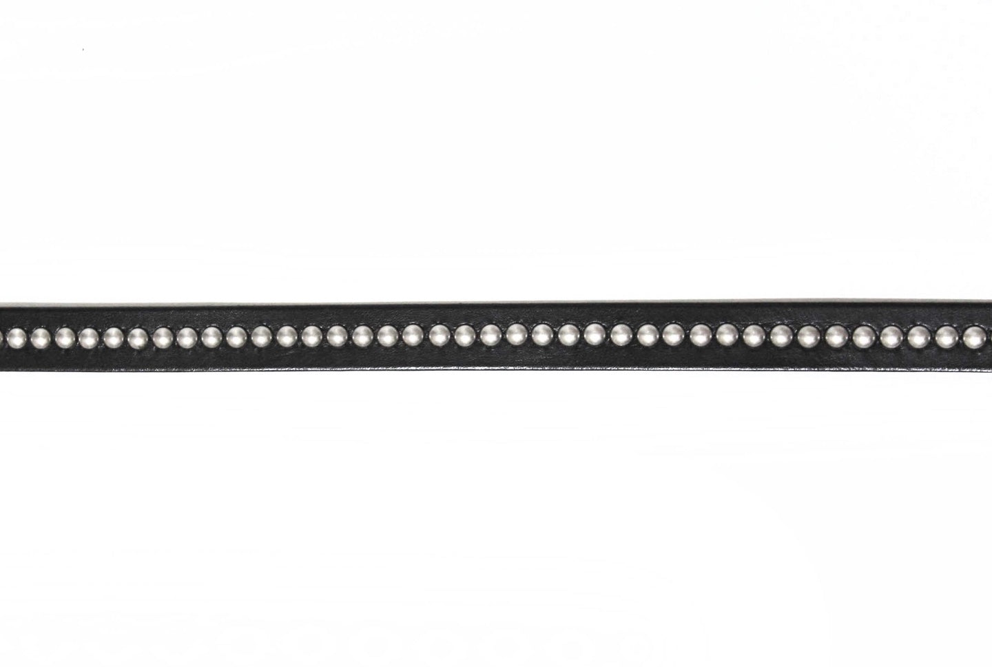 While taking advantage of the texture of the leather, the evenly spaced studs add an accent and individuality to the simple styling.