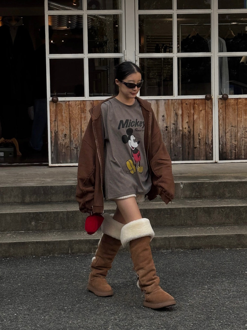 メガフードジップアップ 韓国ファッション レディース(OAT/BROWN・2ver.)