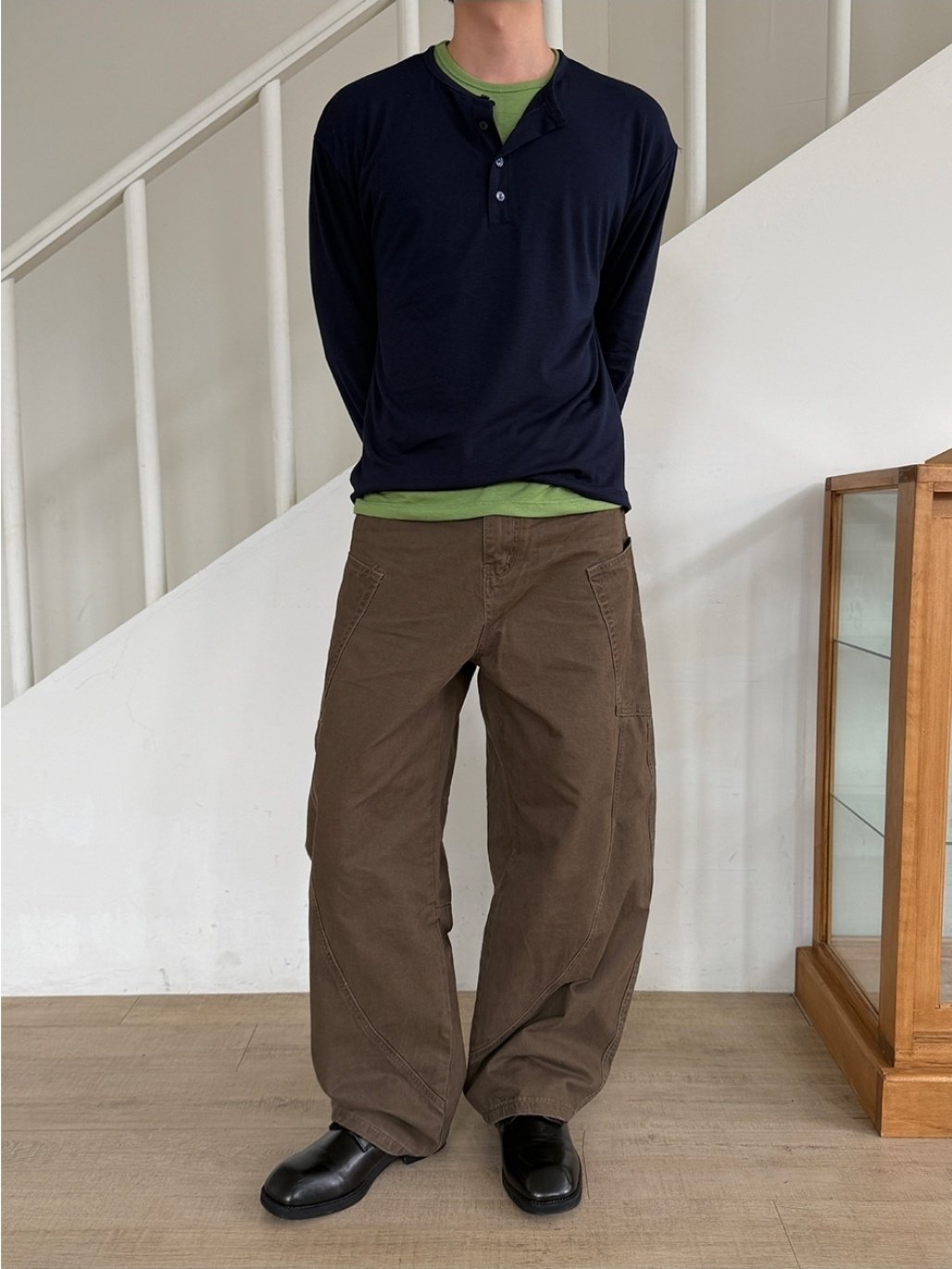 -These wide-fit pants feature a stonewashed finish and natural puckering details along the seams.