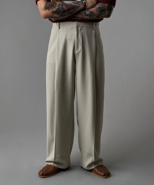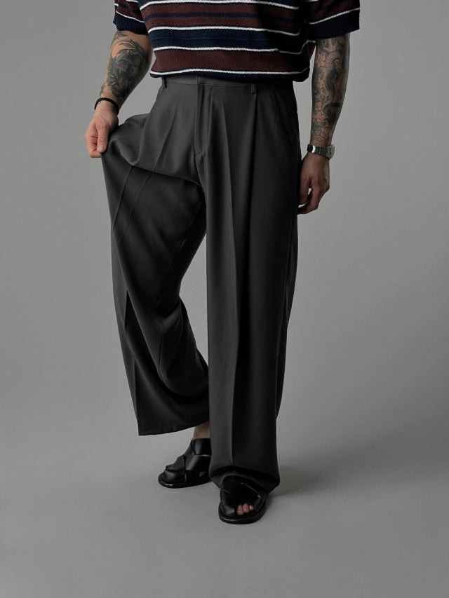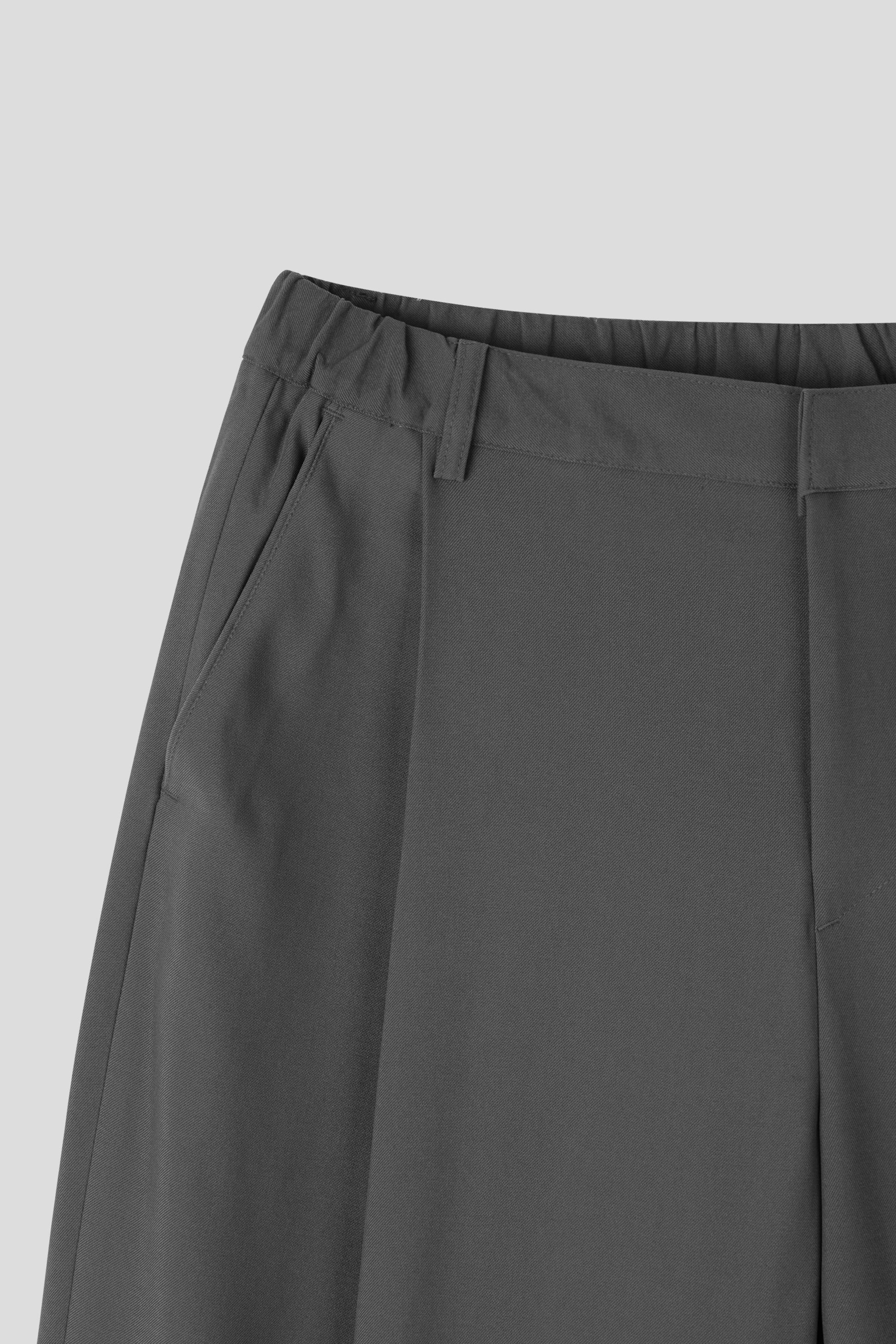 The wide silhouette and drape created by the fabric with a loose feel create a sophisticated impression.