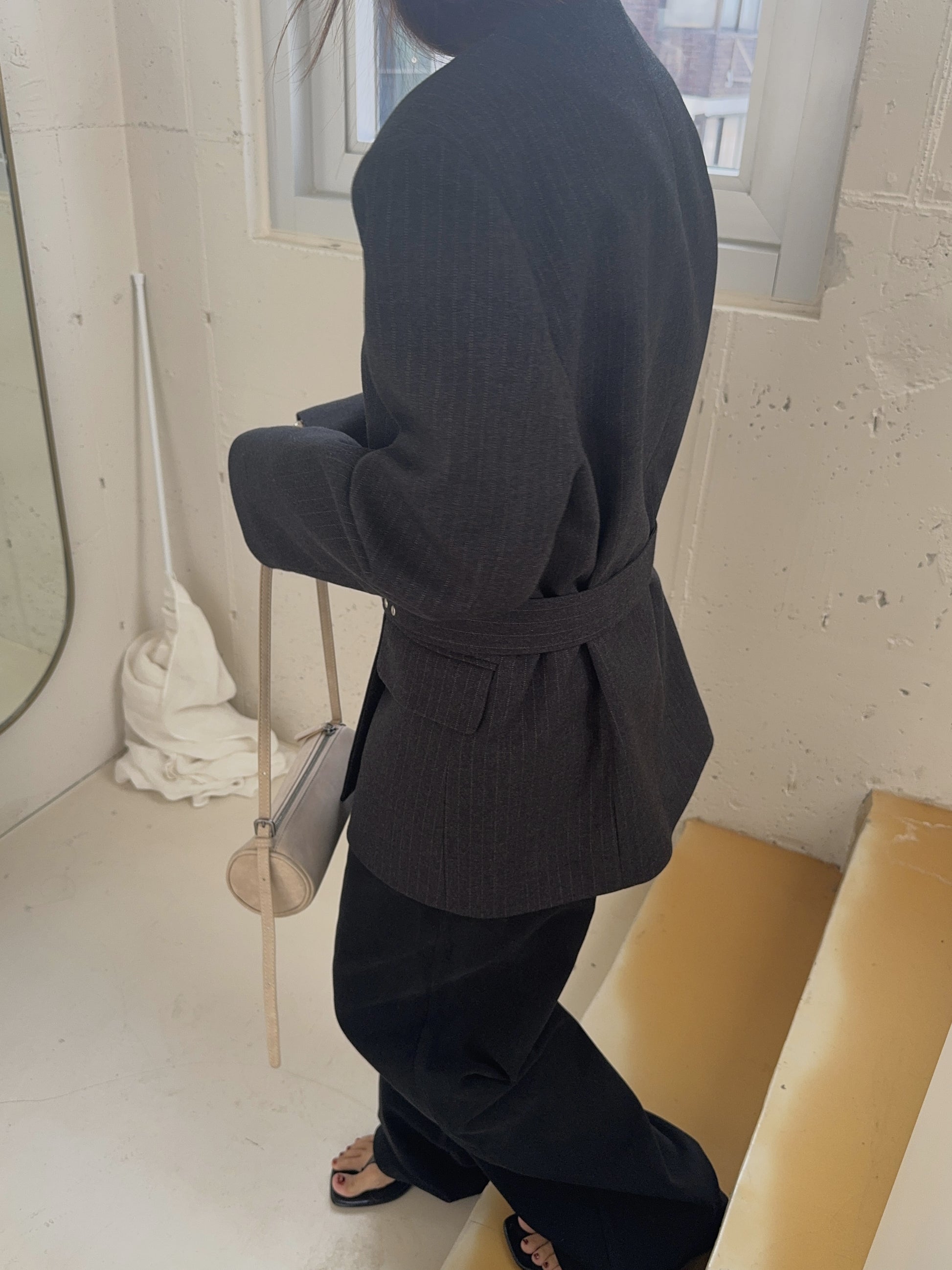 - ほのかなストライプパターンがおしゃれなムードを与え、ベルトポイントでスタイルをさらにアップさせてくれる製品です