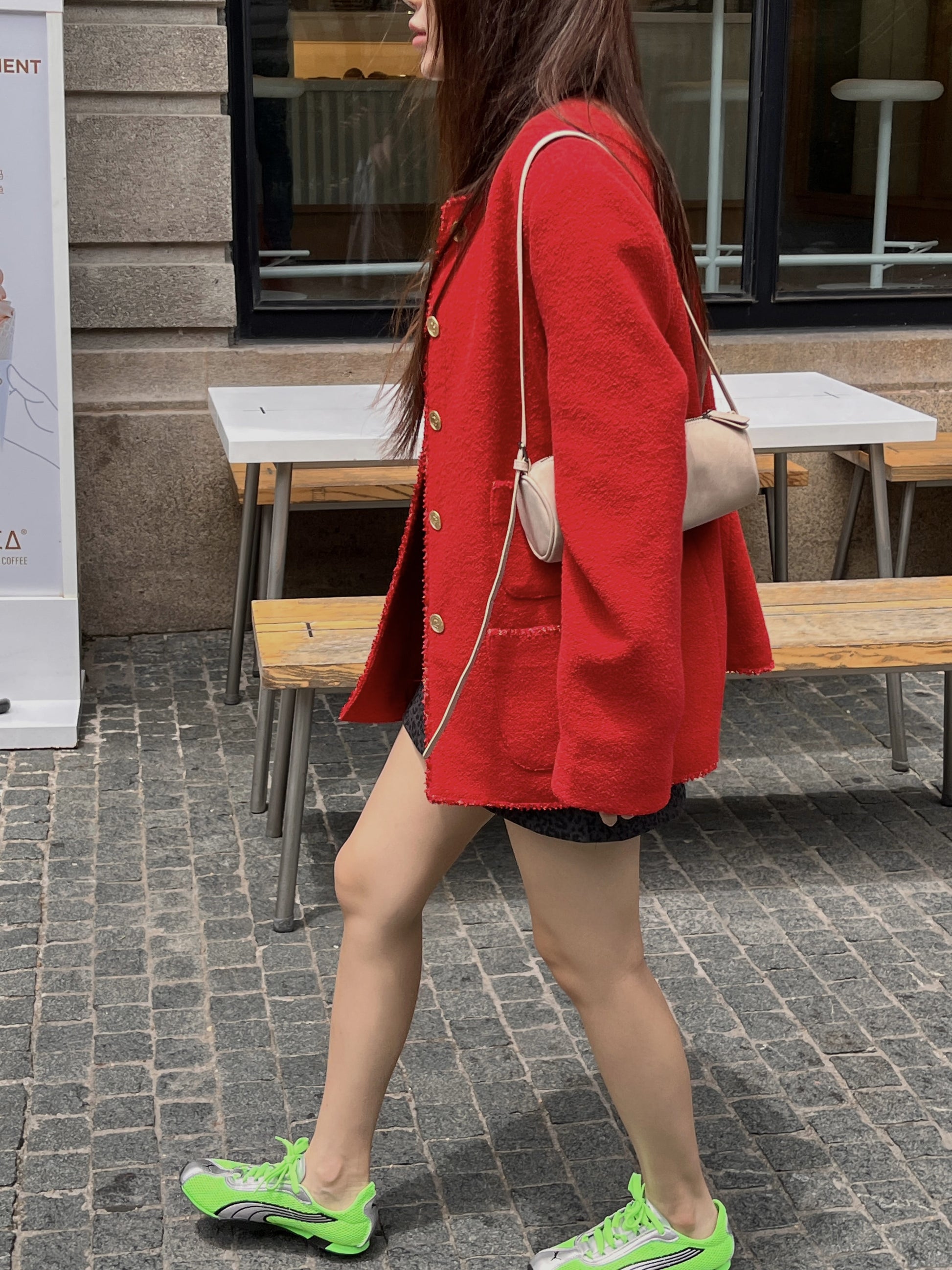 - ウール混用率のツイード素材で女性らしいムードとともにオーバーフィットが魅力的なリングツイードジャケットです