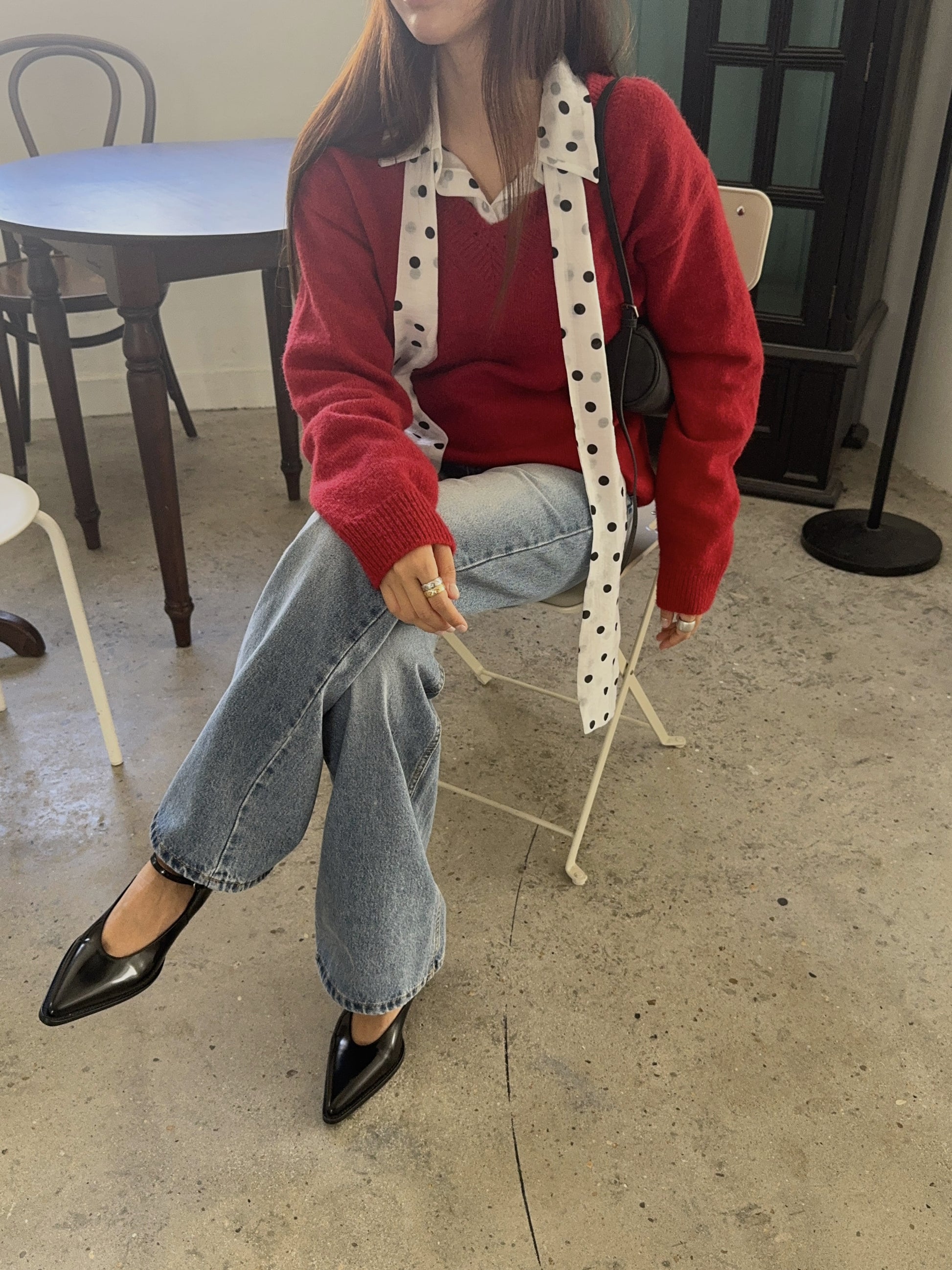 - ルーズなフィットとネックラインディテールがポイントになるシュガーニットです
