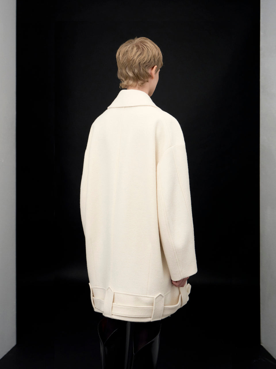 | ディテール | オーバーサイズシルエット / ダブルブレスト / 表情のあるブークレ素材 |