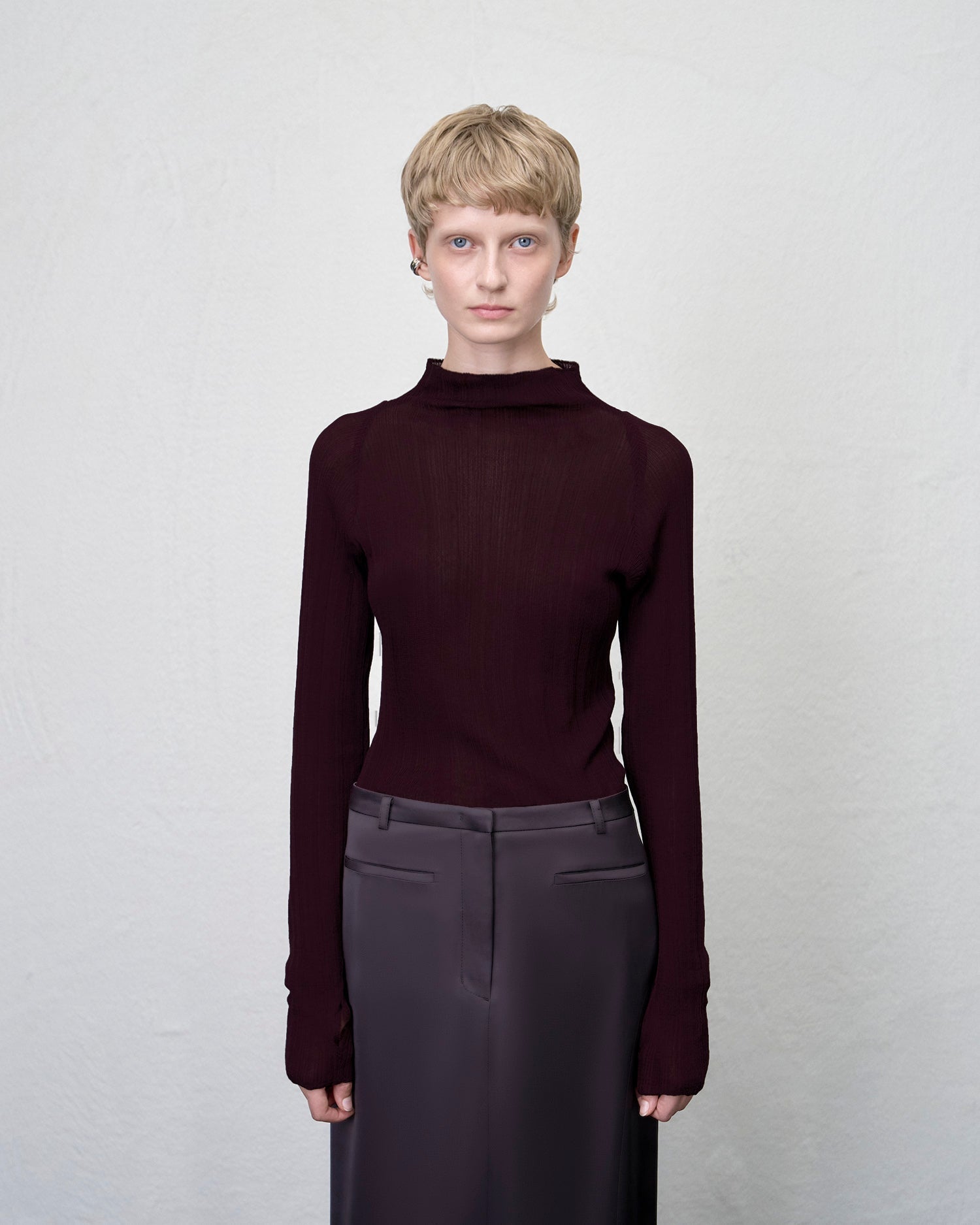 【ARIK. アリク AW】MINCHIR lettuce edge high neck knit top Burgundy Brown