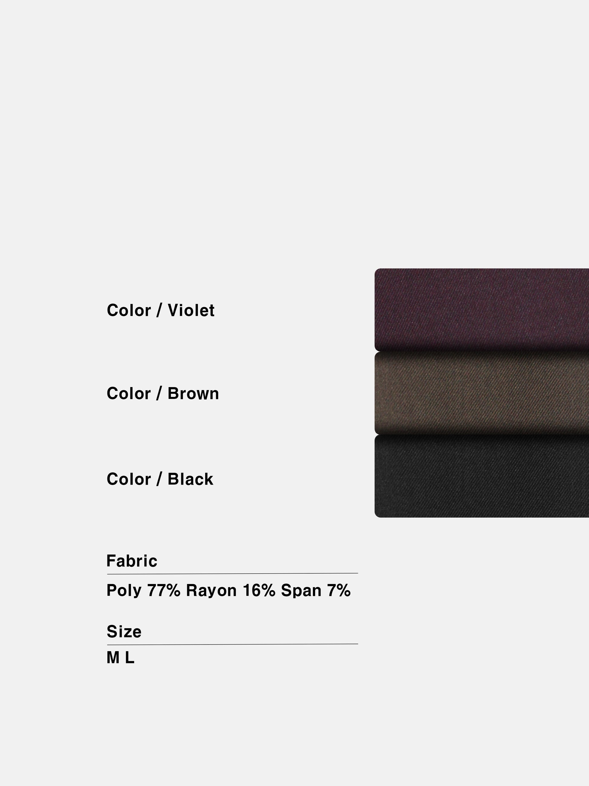 ブラック、ブラウン、バイオレットそれぞれが異なる空気感を持ち、日常にも特別なシーンにも自然に溶け込む一着です。