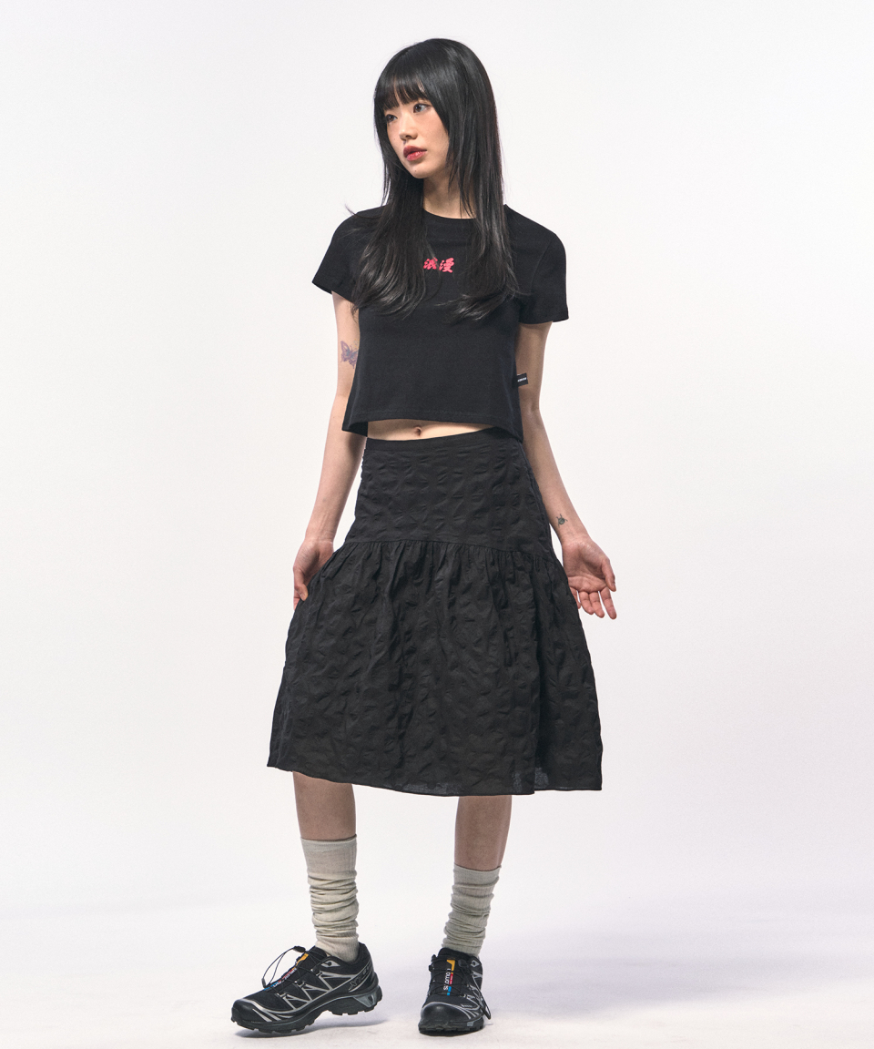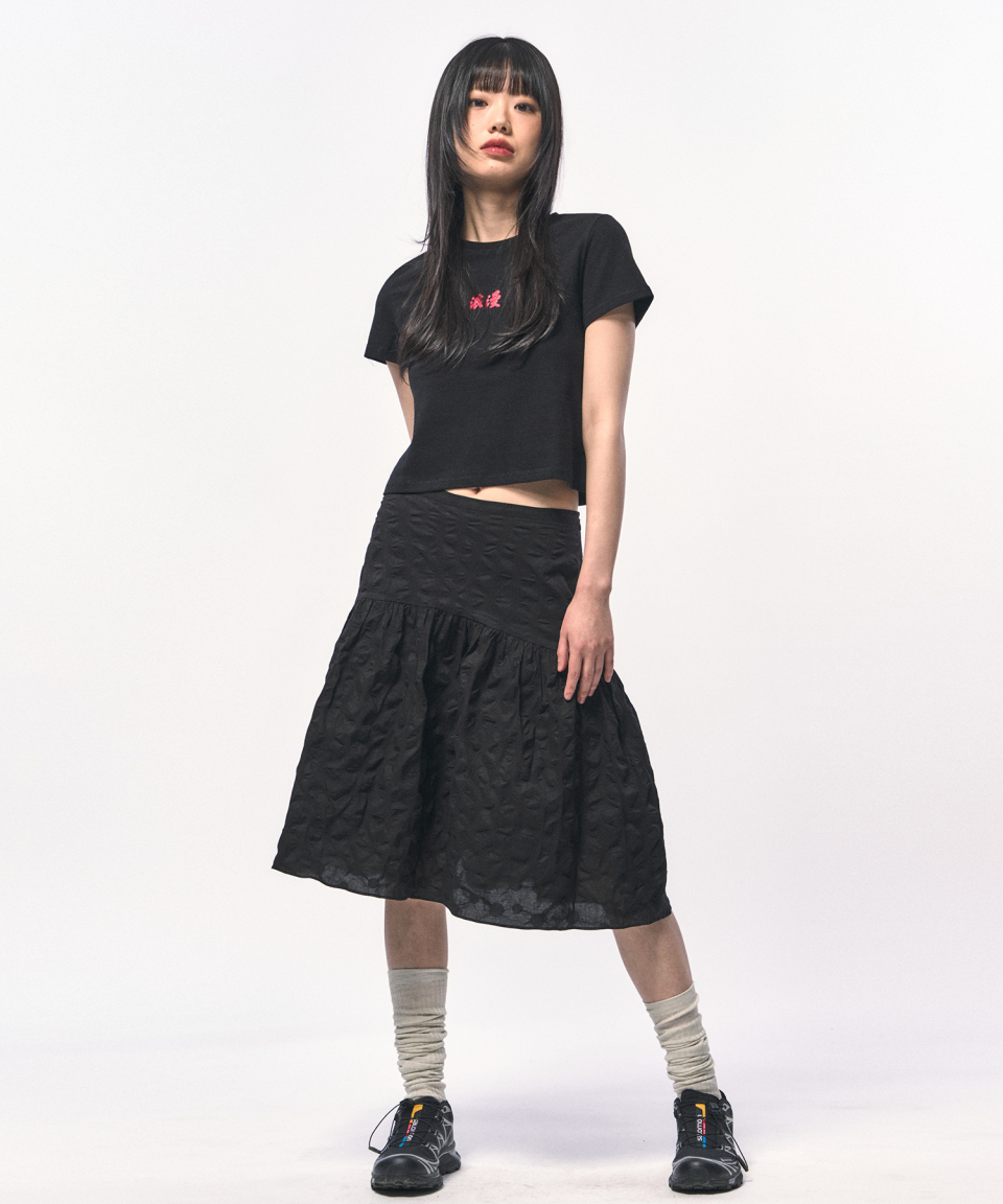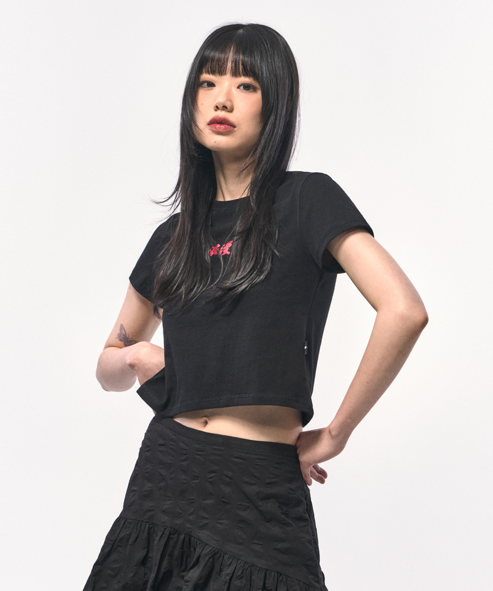 【C Wear シーウエア】浪漫 Romance CROP T-SHIRT BLACK
