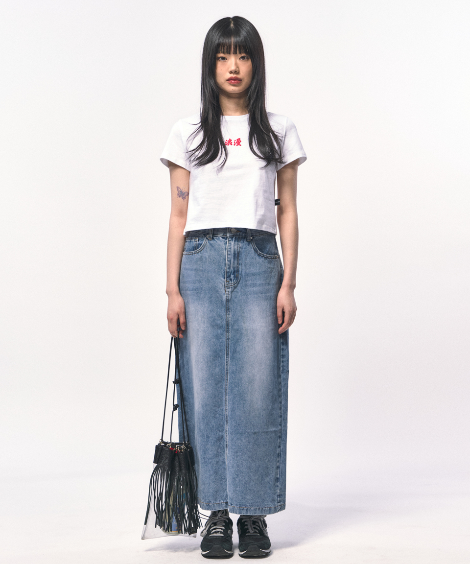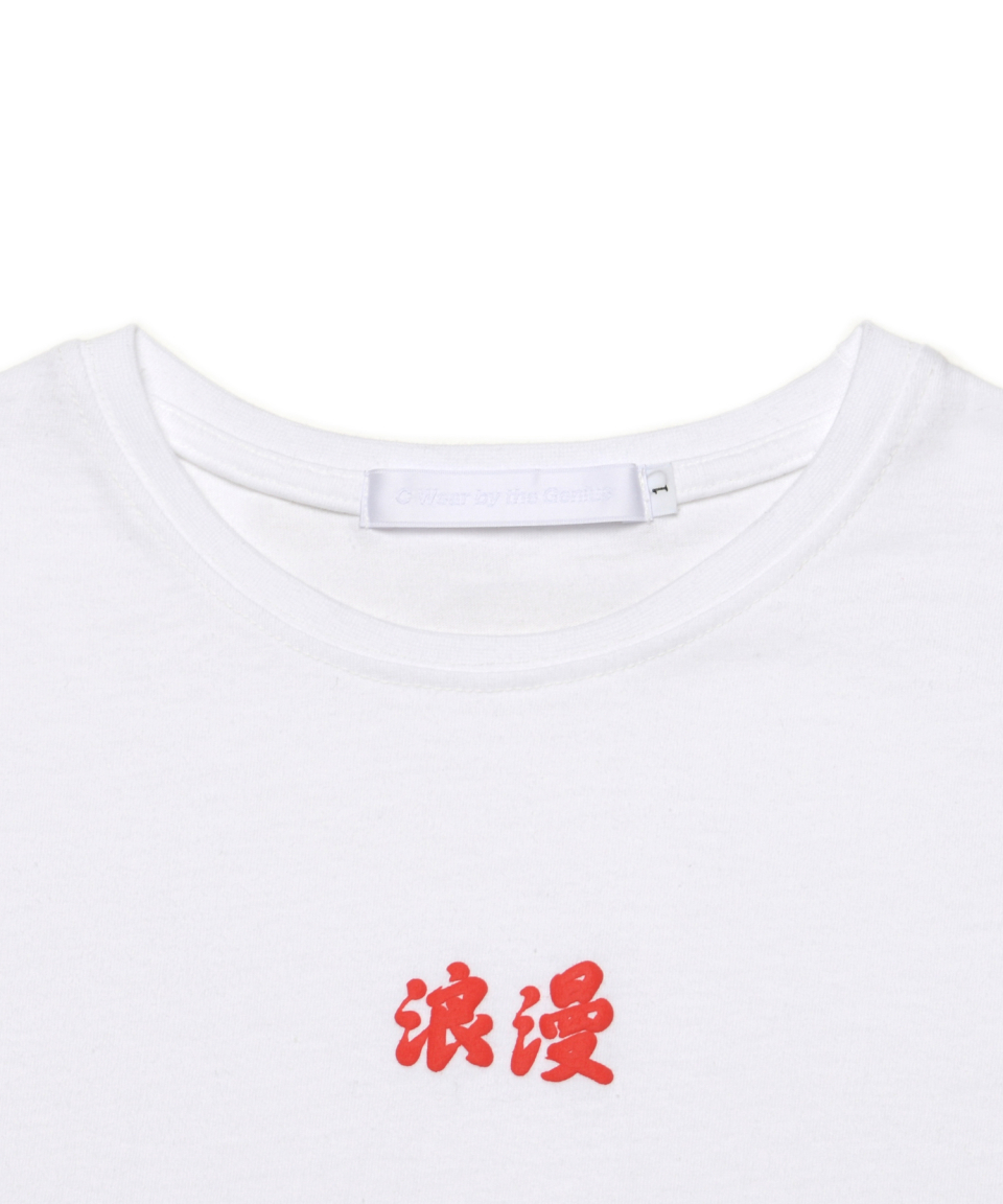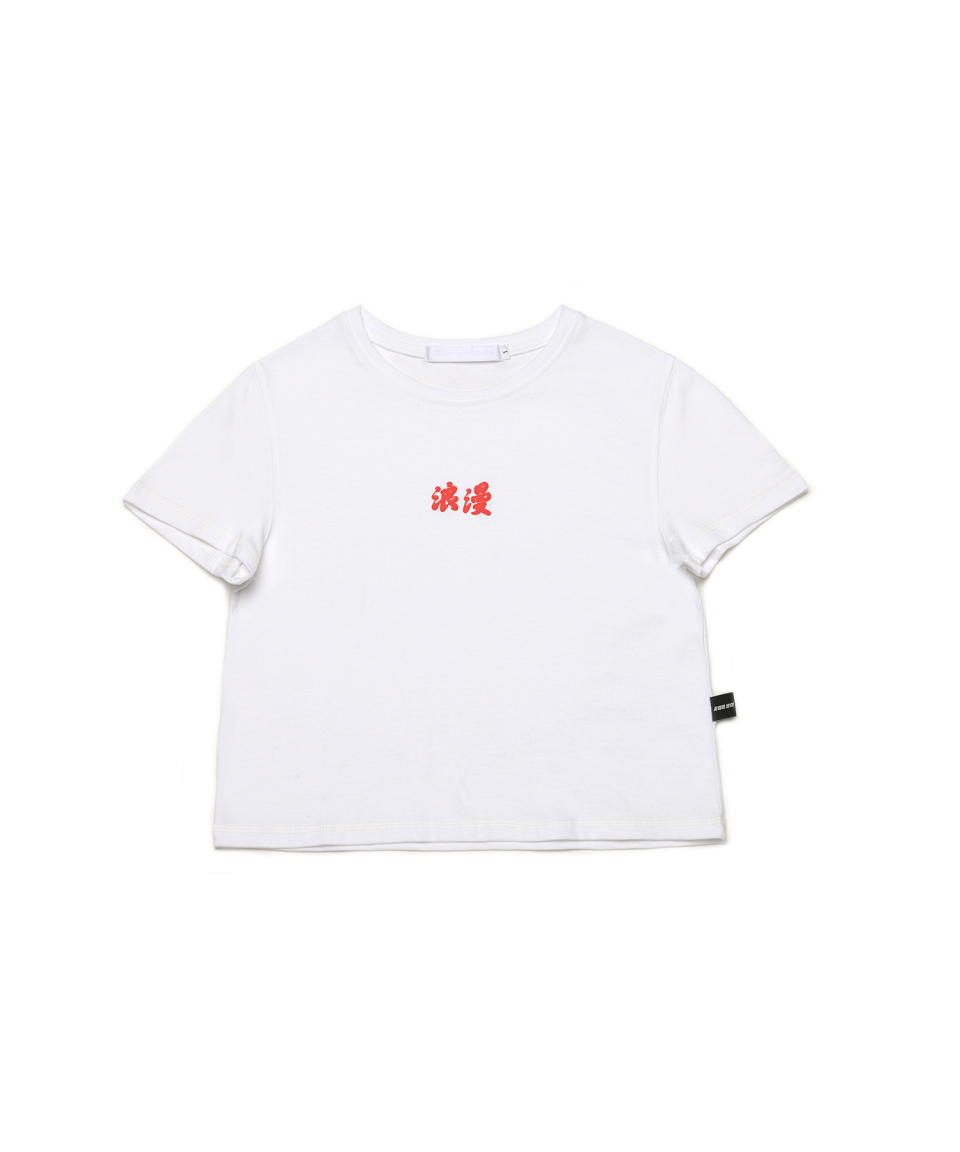 “浪漫(ロマン)”の漢字グラフィックを、コンパクトなクロップ丈に落とし込んだTシャツ。