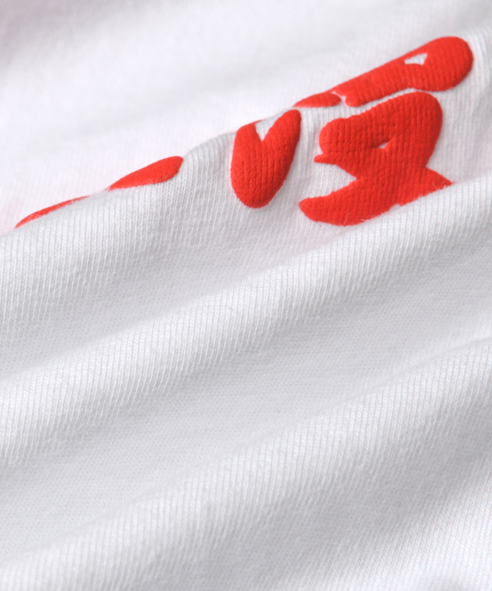 白Tの抜け感と“浪漫”のタイポグラフィが調和し、大人の遊び心を軽やかに表現する一枚です。