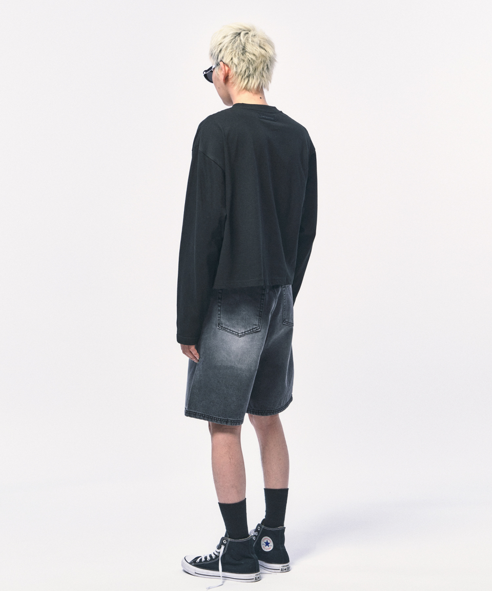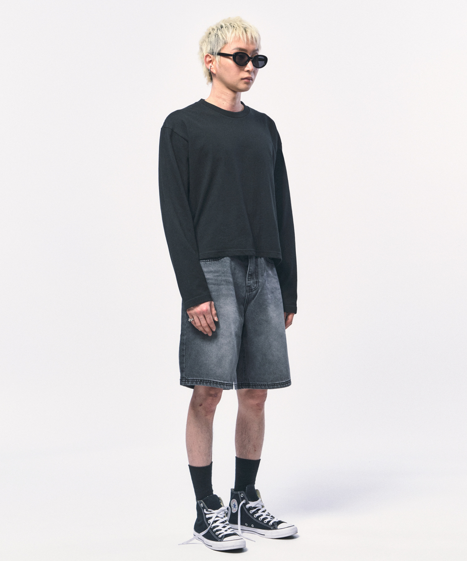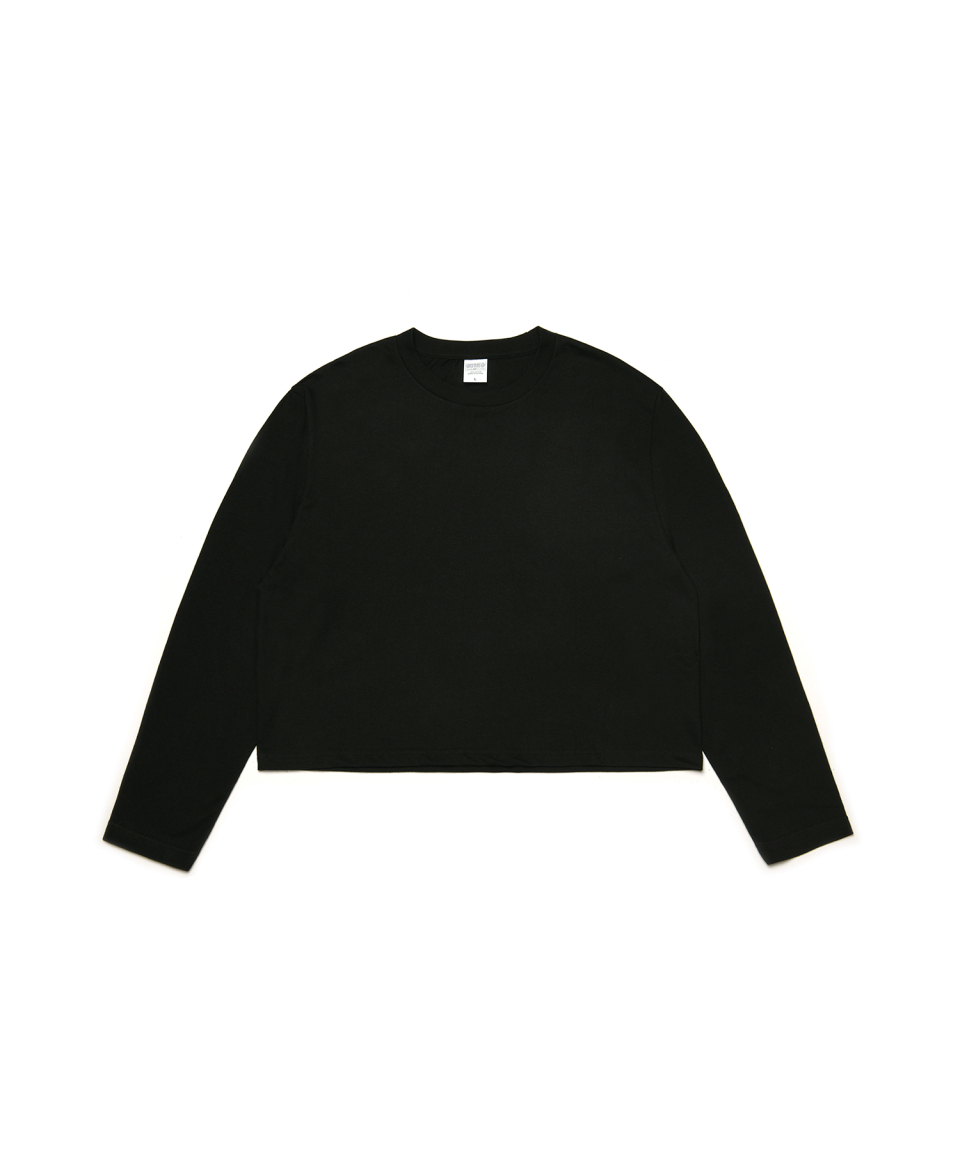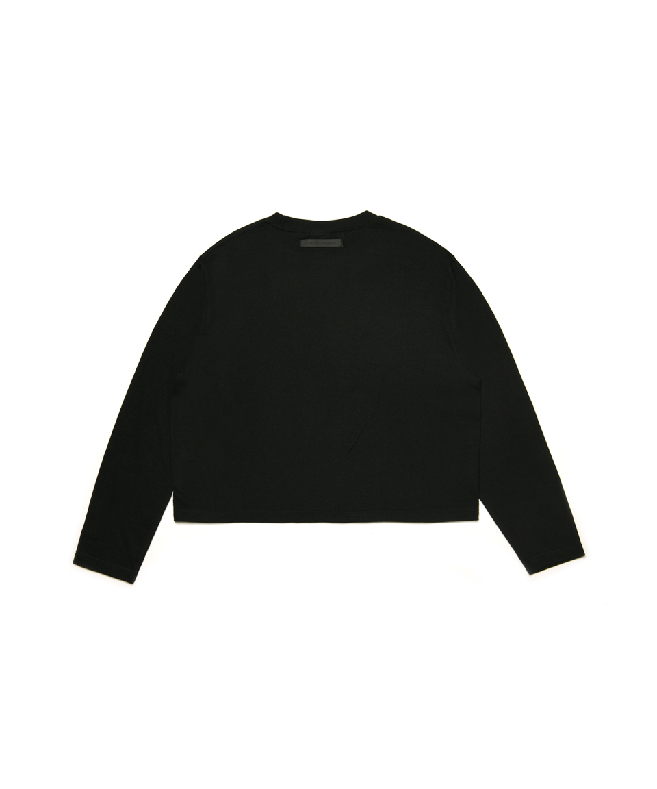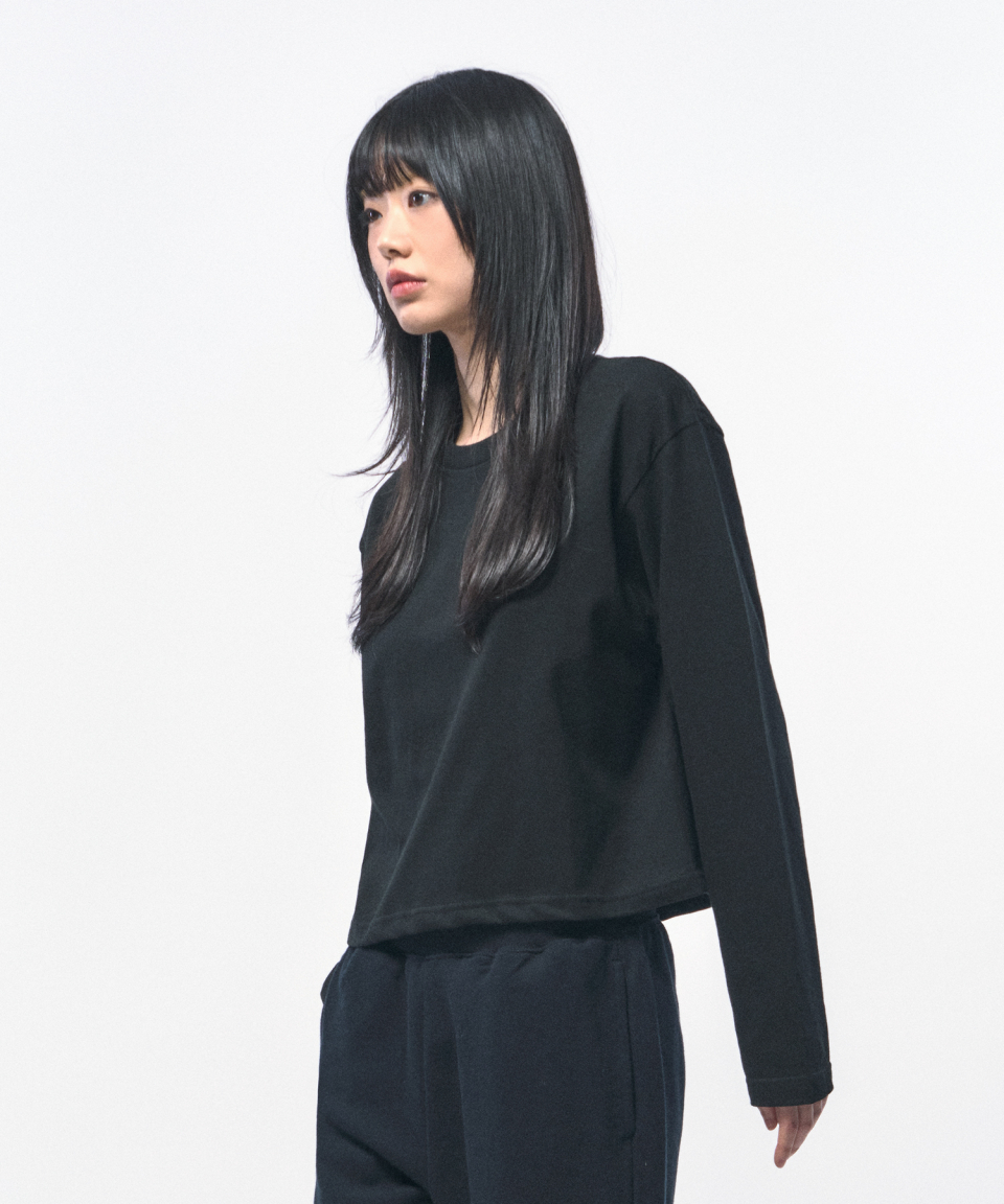 シャープなクロップ丈に、ロングスリーブの落ち感を重ねたミニマルな一枚。
