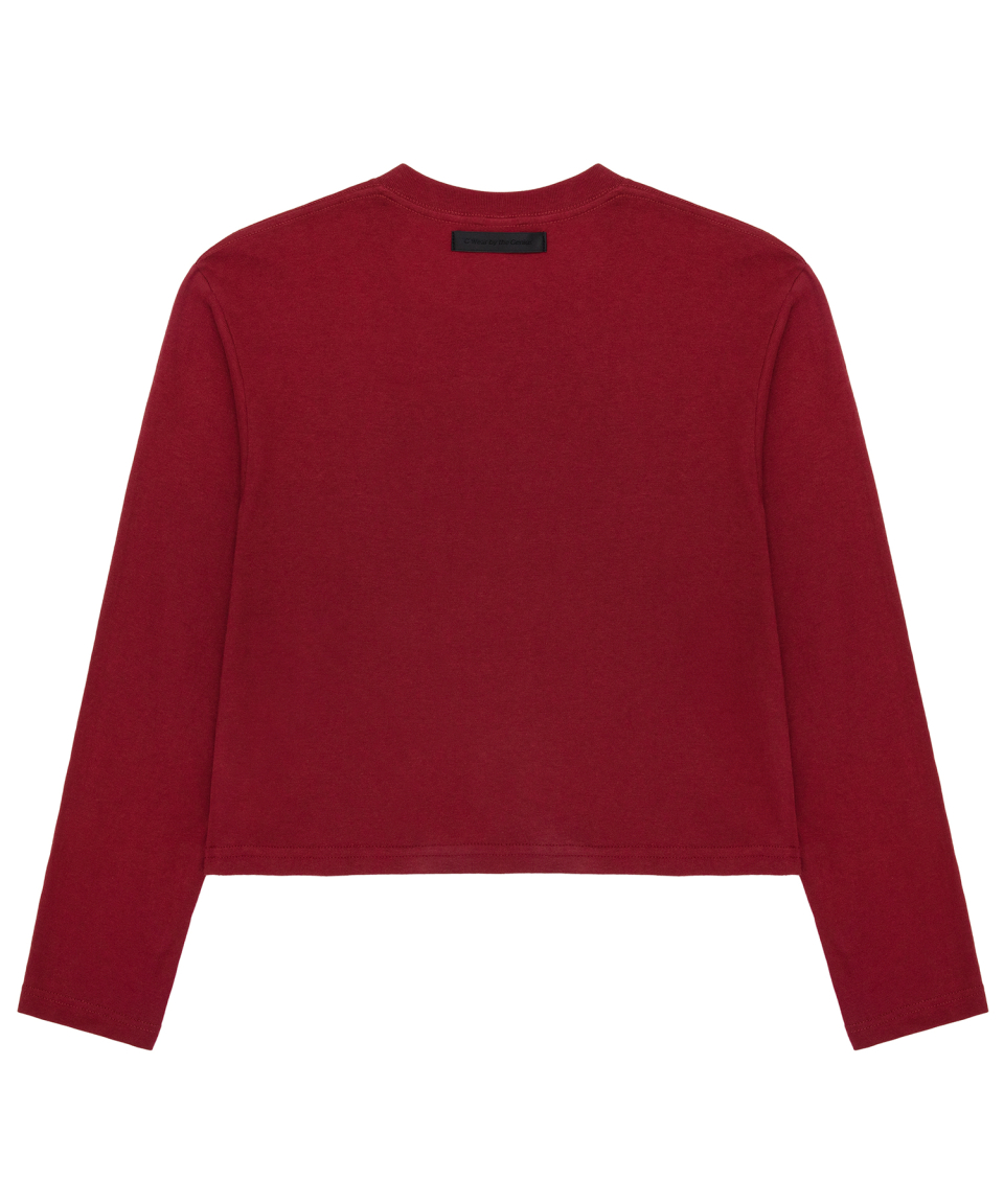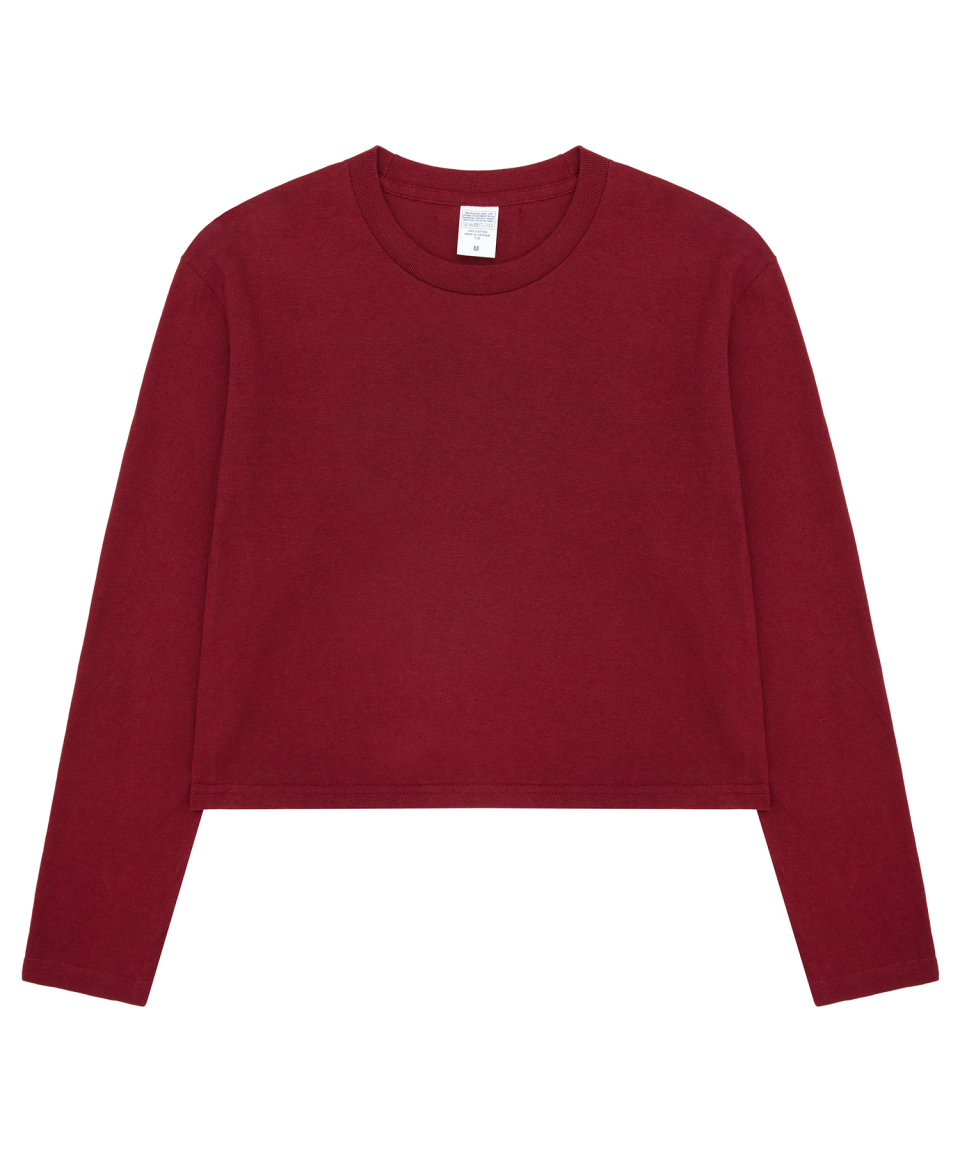 深みのあるバーガンディが、クロップ丈の軽やかなシルエットに豊かな表情を添えるロングスリーブTシャツ。