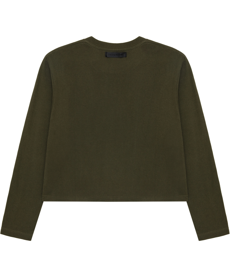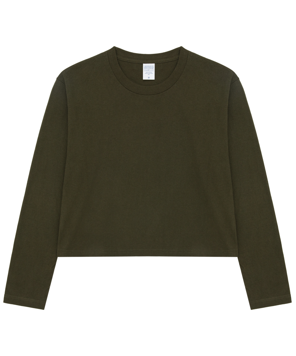 深みのあるカーキが、クロップ丈の軽やかなシルエットに落ち着いたニュアンスを添えるロングスリーブTシャツ。