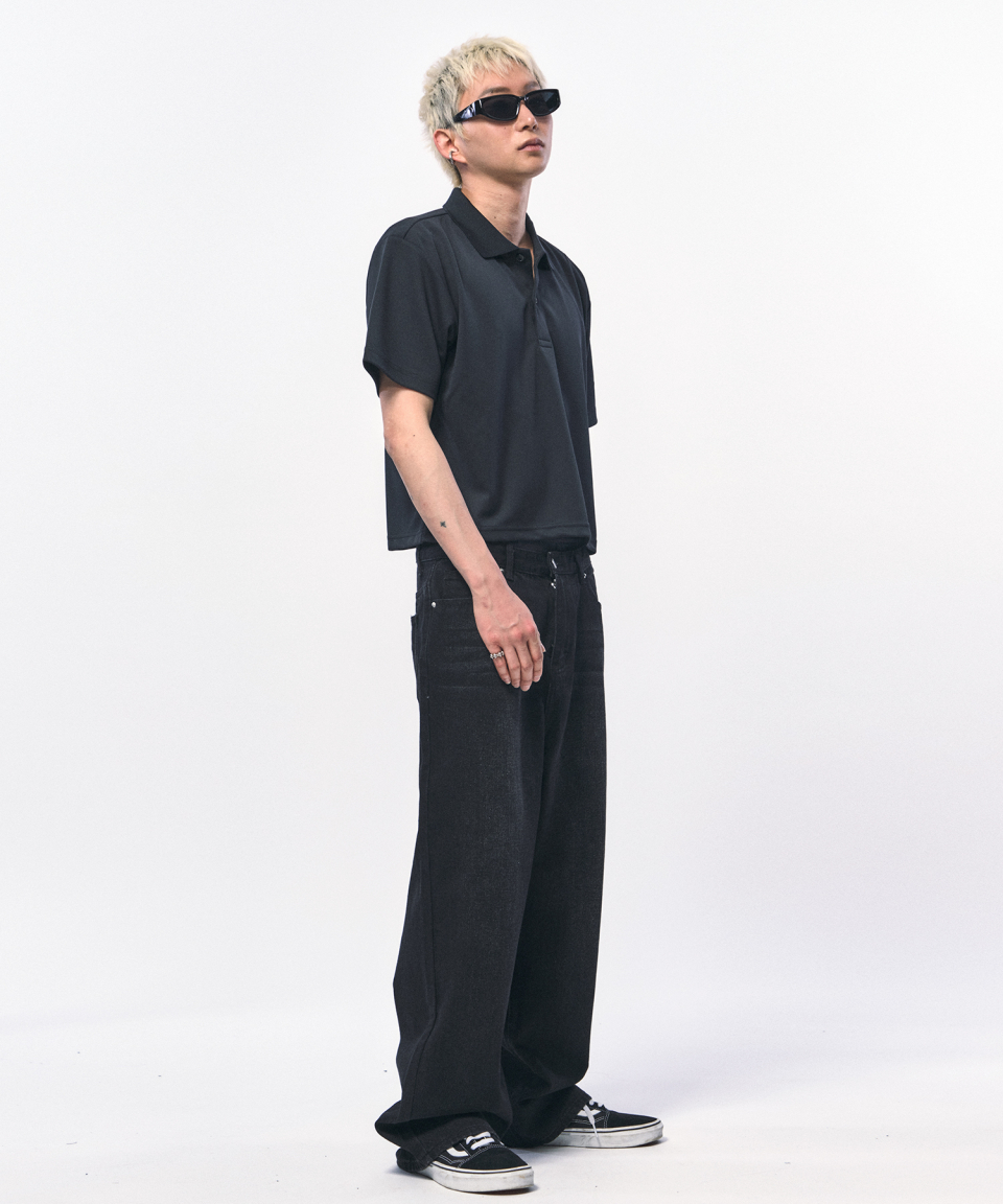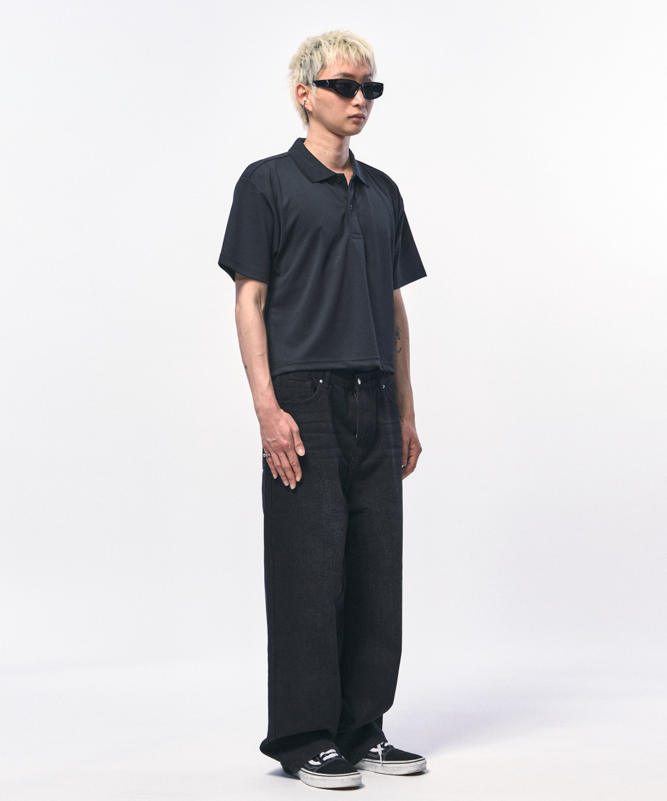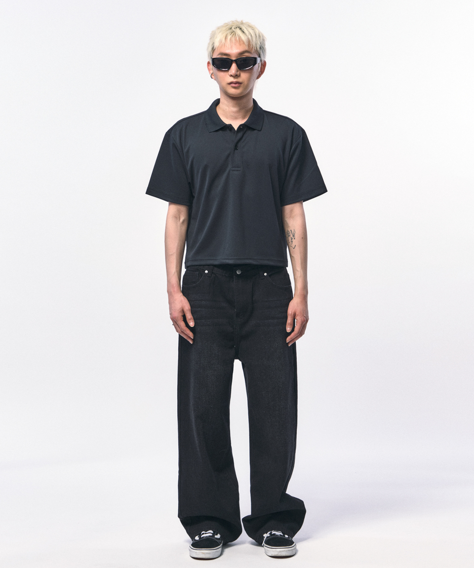 【C Wear シーウエア】MEN'S CROP PIQUE POLO SHIRT BLACK