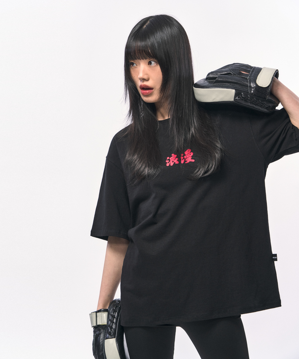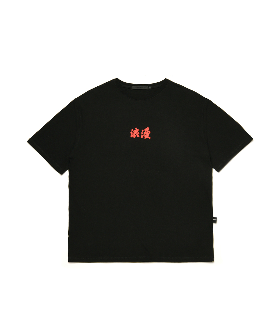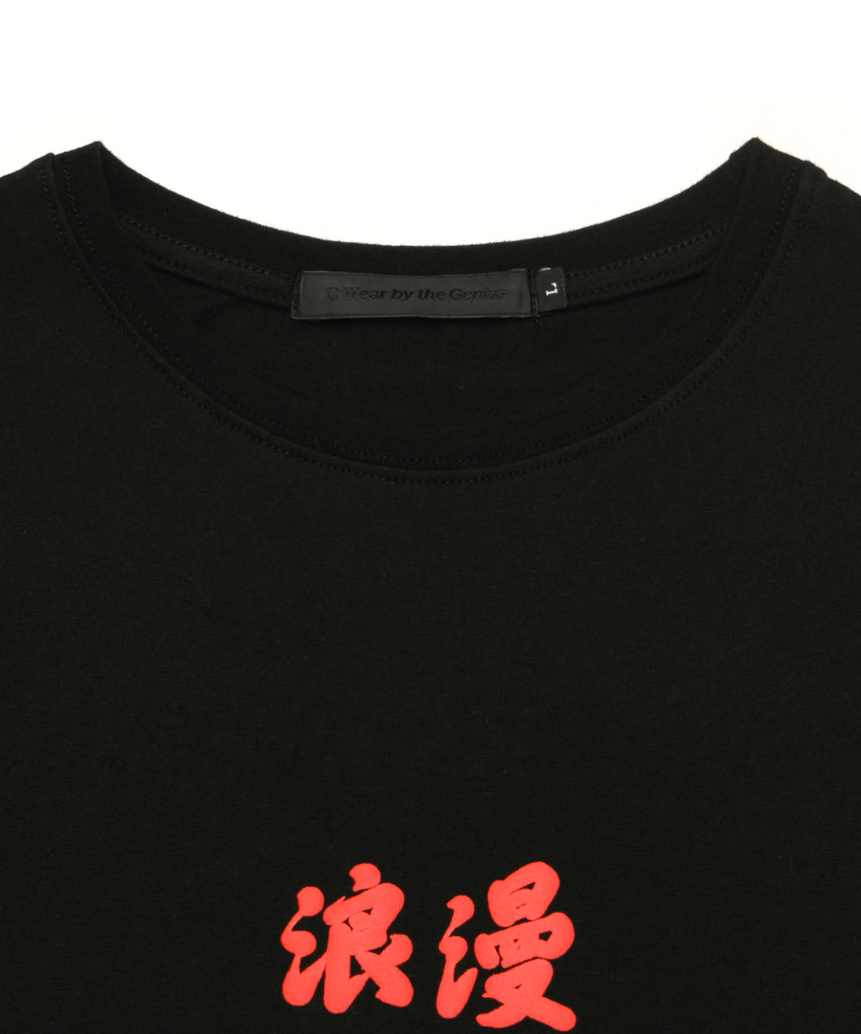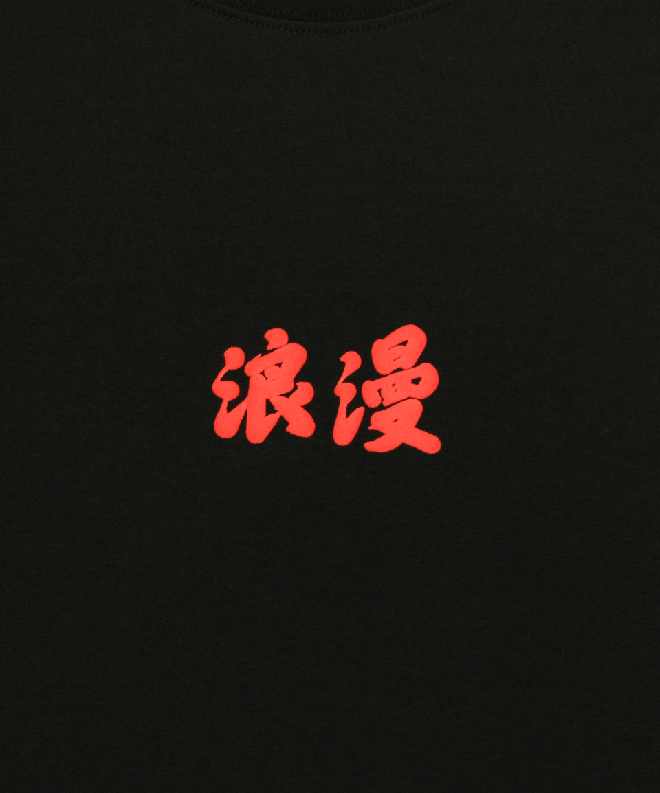 漢字で“浪漫(ロマン)”と描いたミニマルなグラフィックが特徴のTシャツ。
