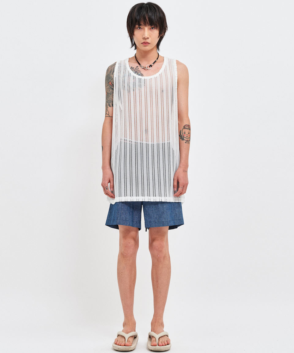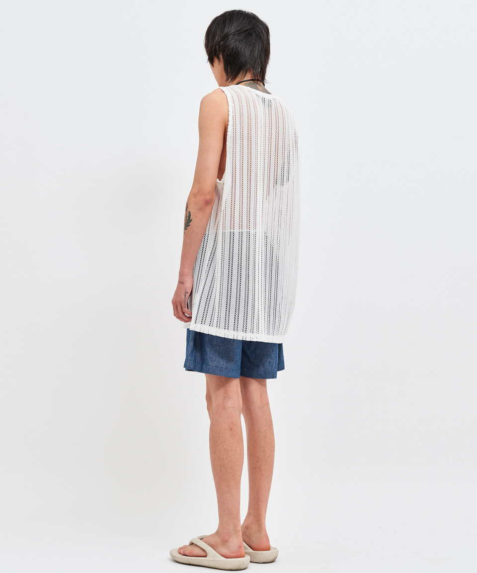 SEE-THROUGH CRAFT KNIT SLEEVELESS WHITE