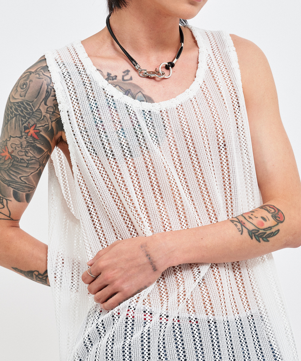 【C Wear シーウエア】SEE-THROUGH CRAFT KNIT SLEEVELESS WHITE