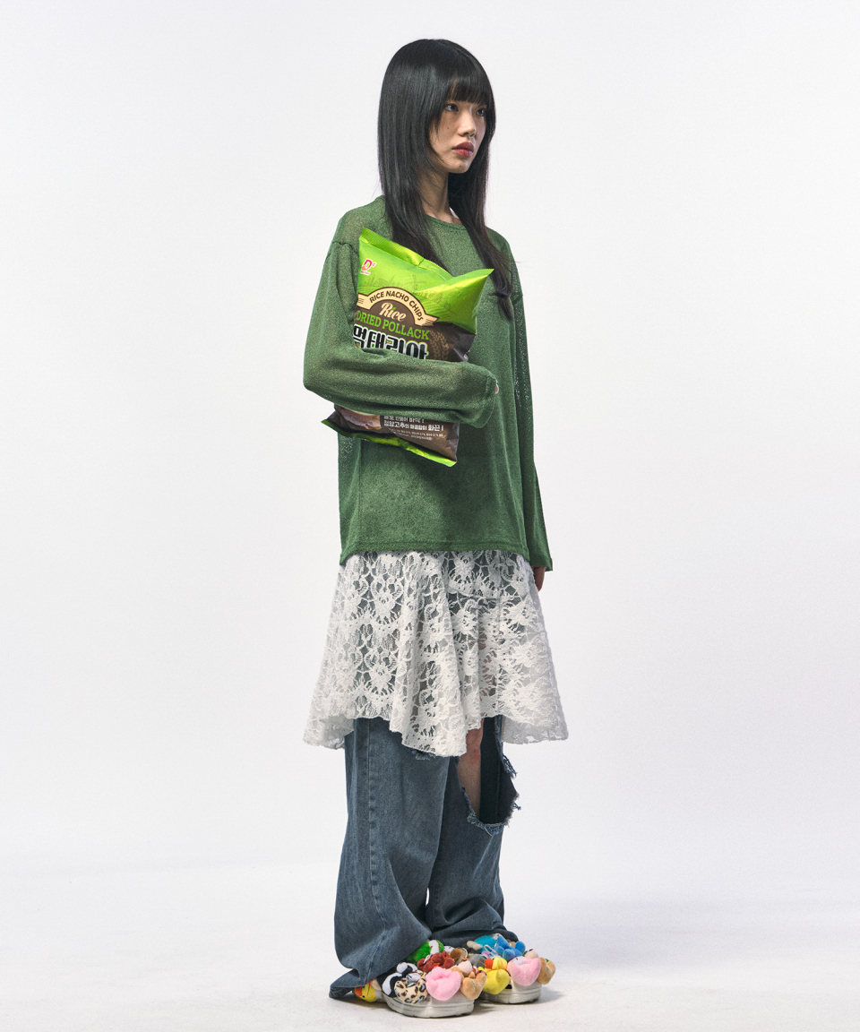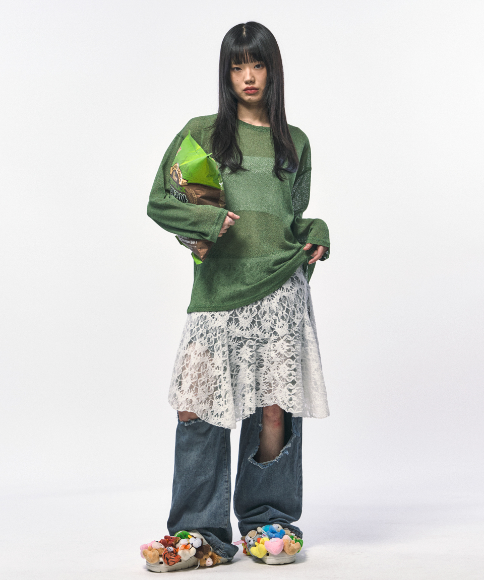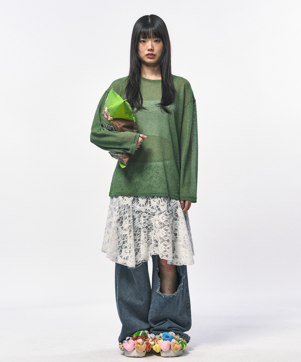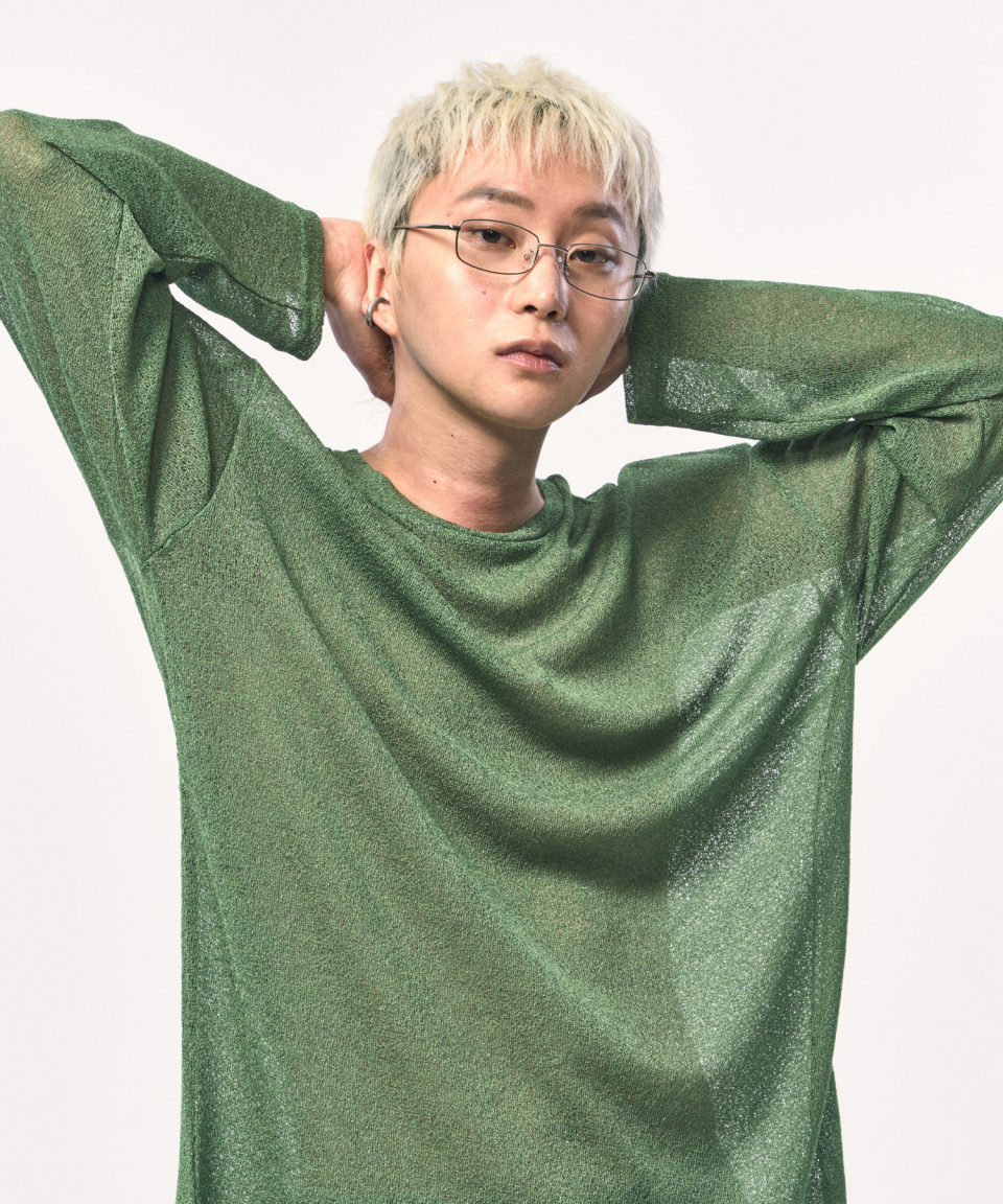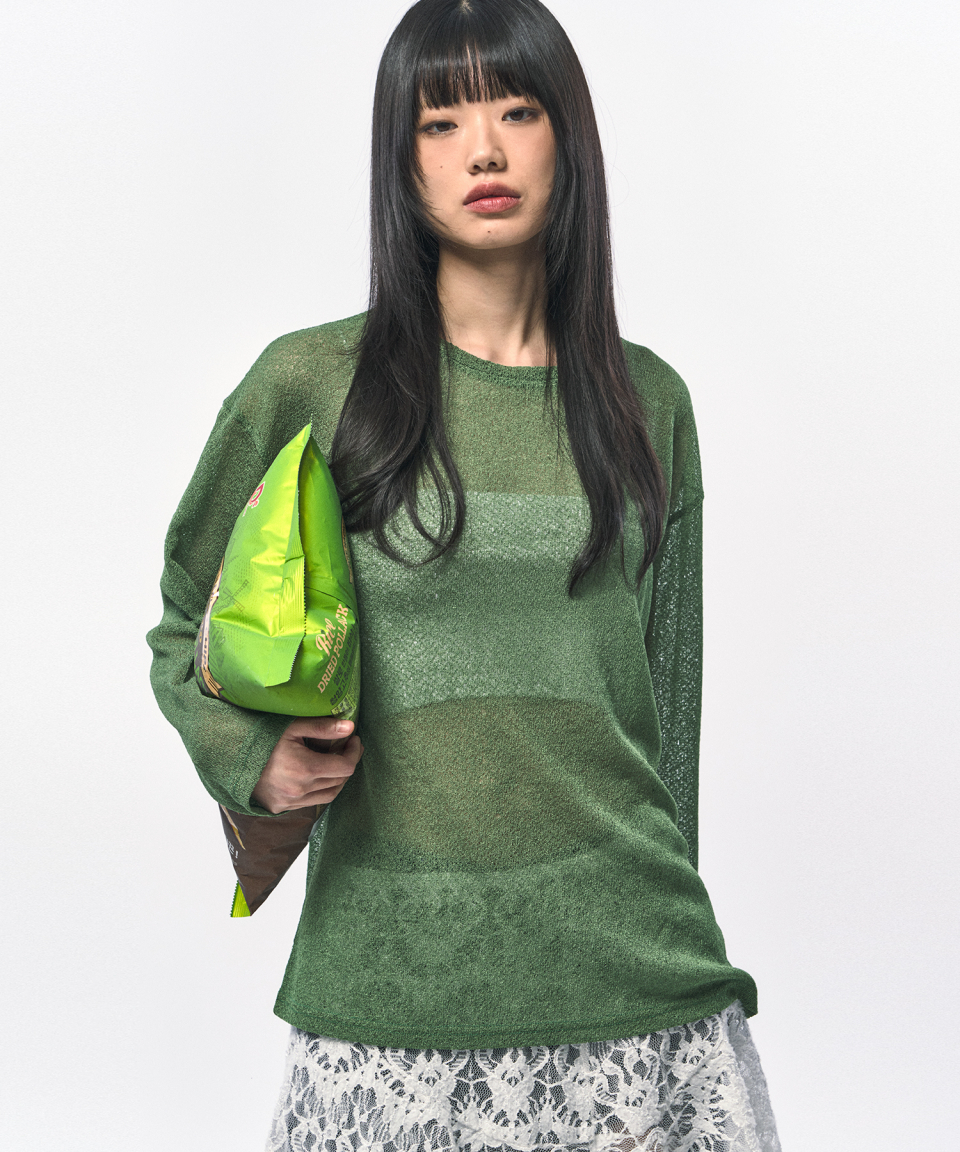【C Wear シーウエア】SEE-THROUGH LONG SLEEVE T-SHIRT GREEN