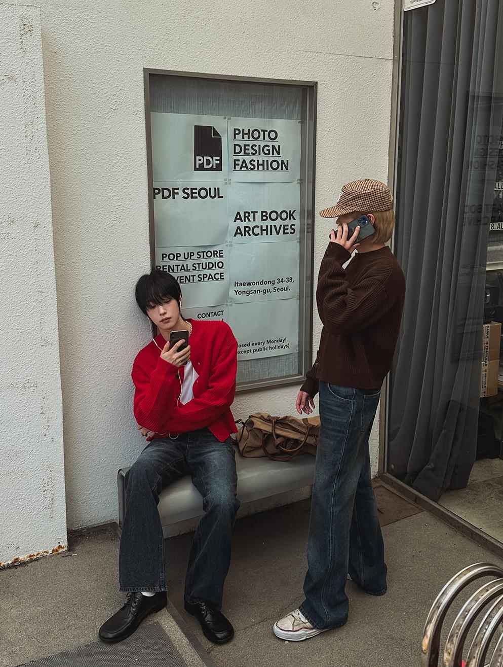 - RED:白T×ヴィンテージデニムで“韓国ストリート感”。主役カラーで一気に完成。