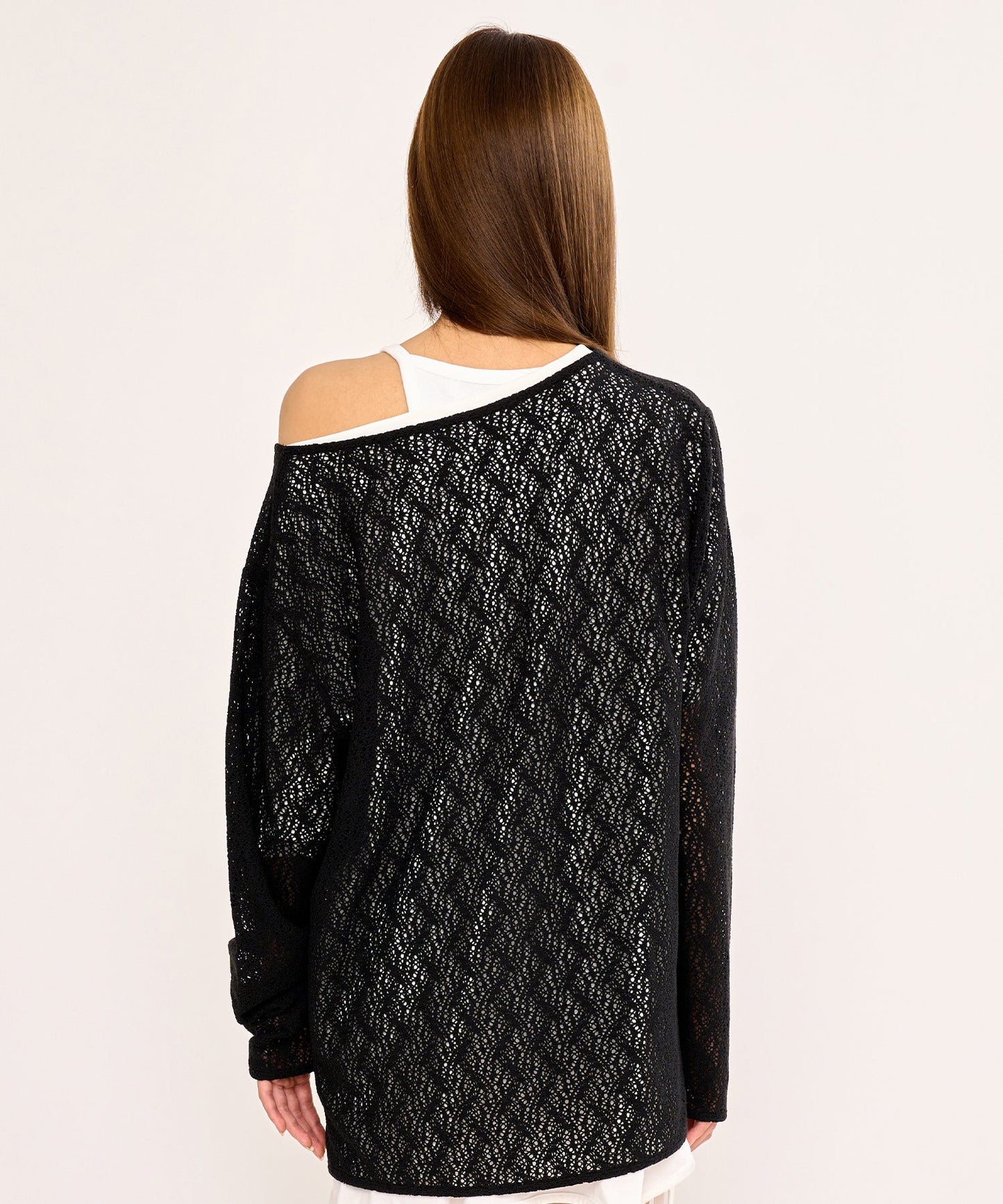 モデルは身長172cm、体重43kg(バスト32インチ、ウエスト23インチ、ヒップ34インチ)、着用サイズはOSです。