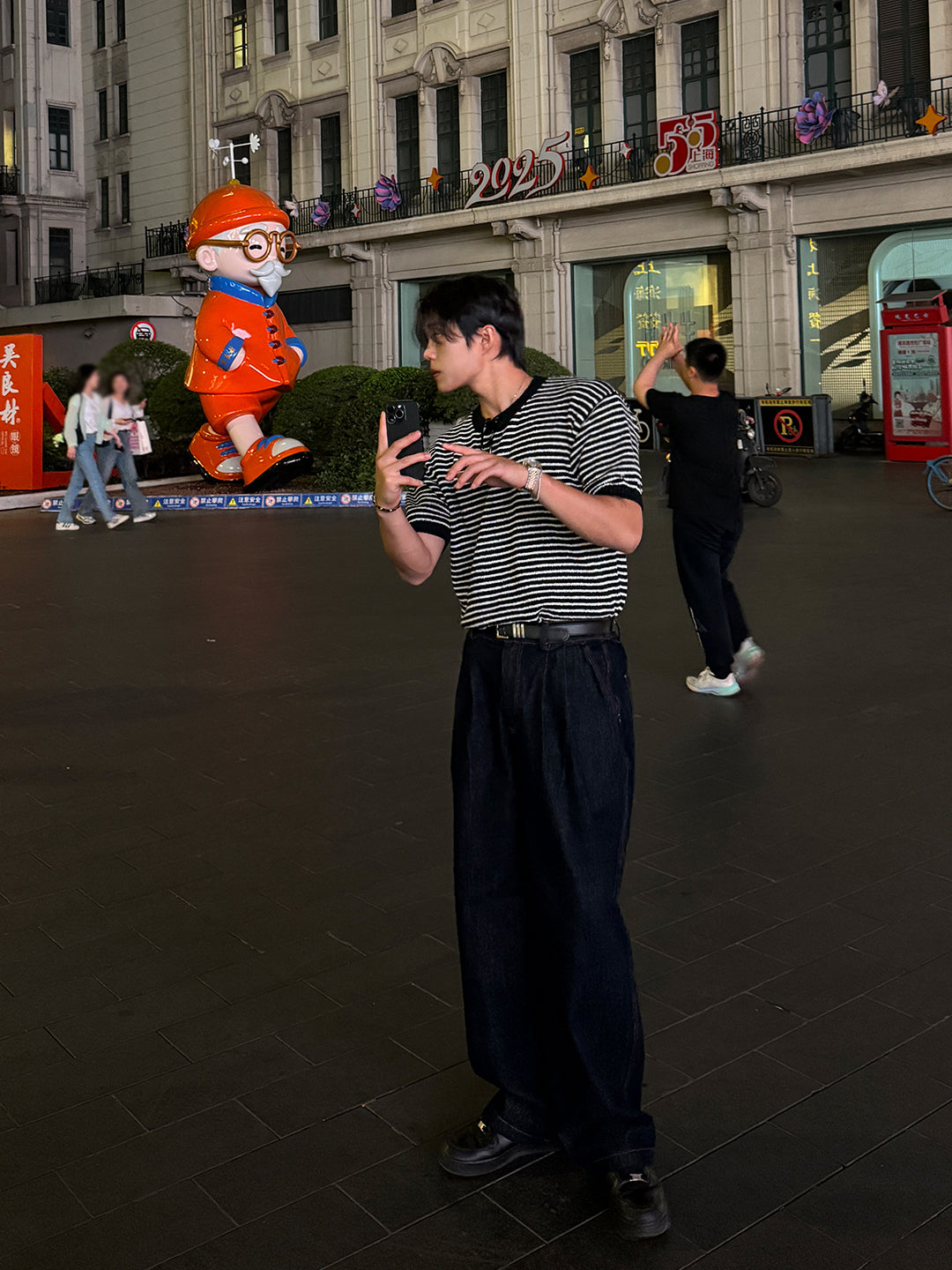 - レザーサンダルやスニーカーでカジュアルダウン。