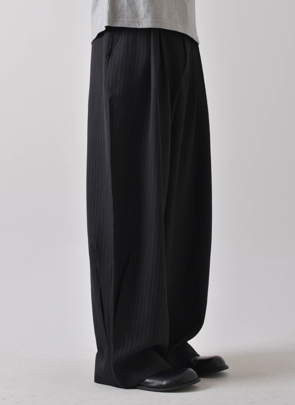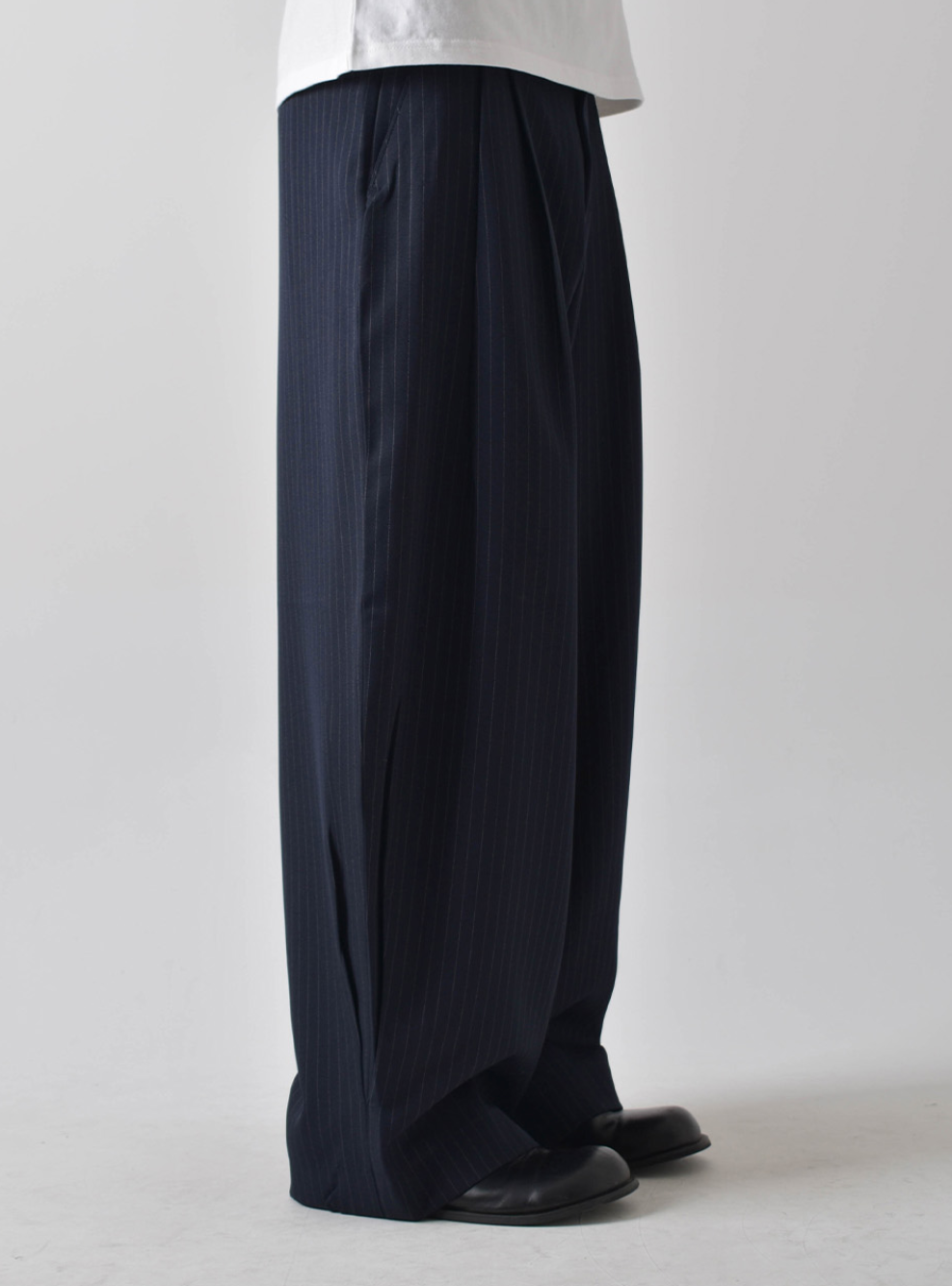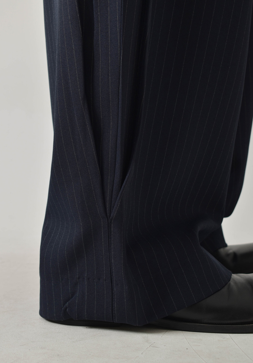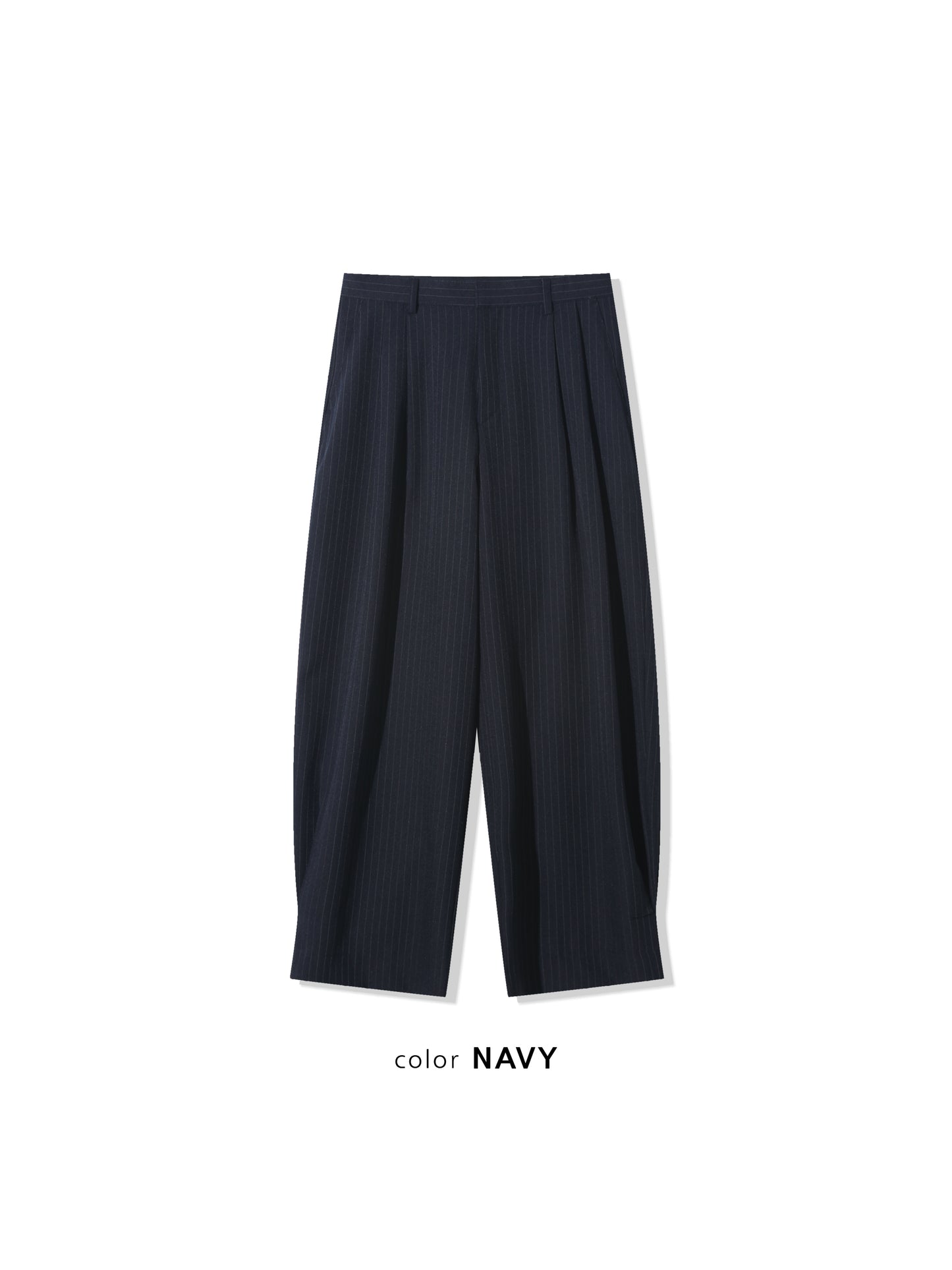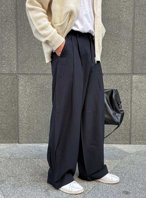 繊細なピンストライプが特徴的な「ルエン ストライプパンツ」。