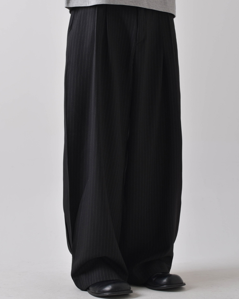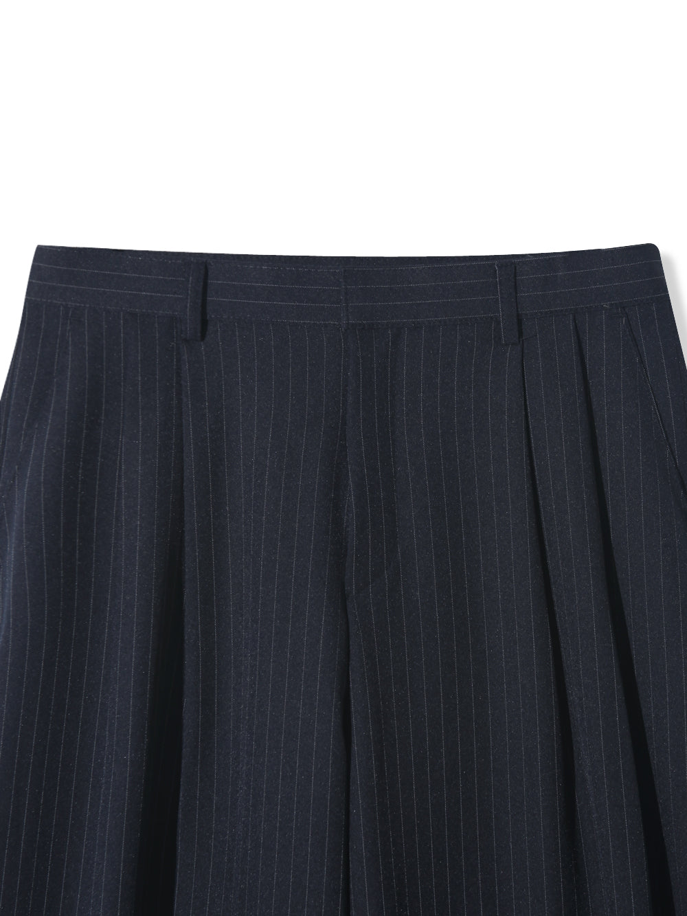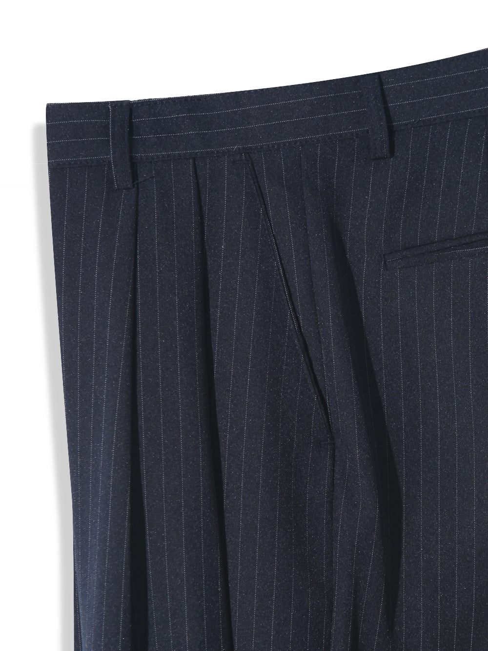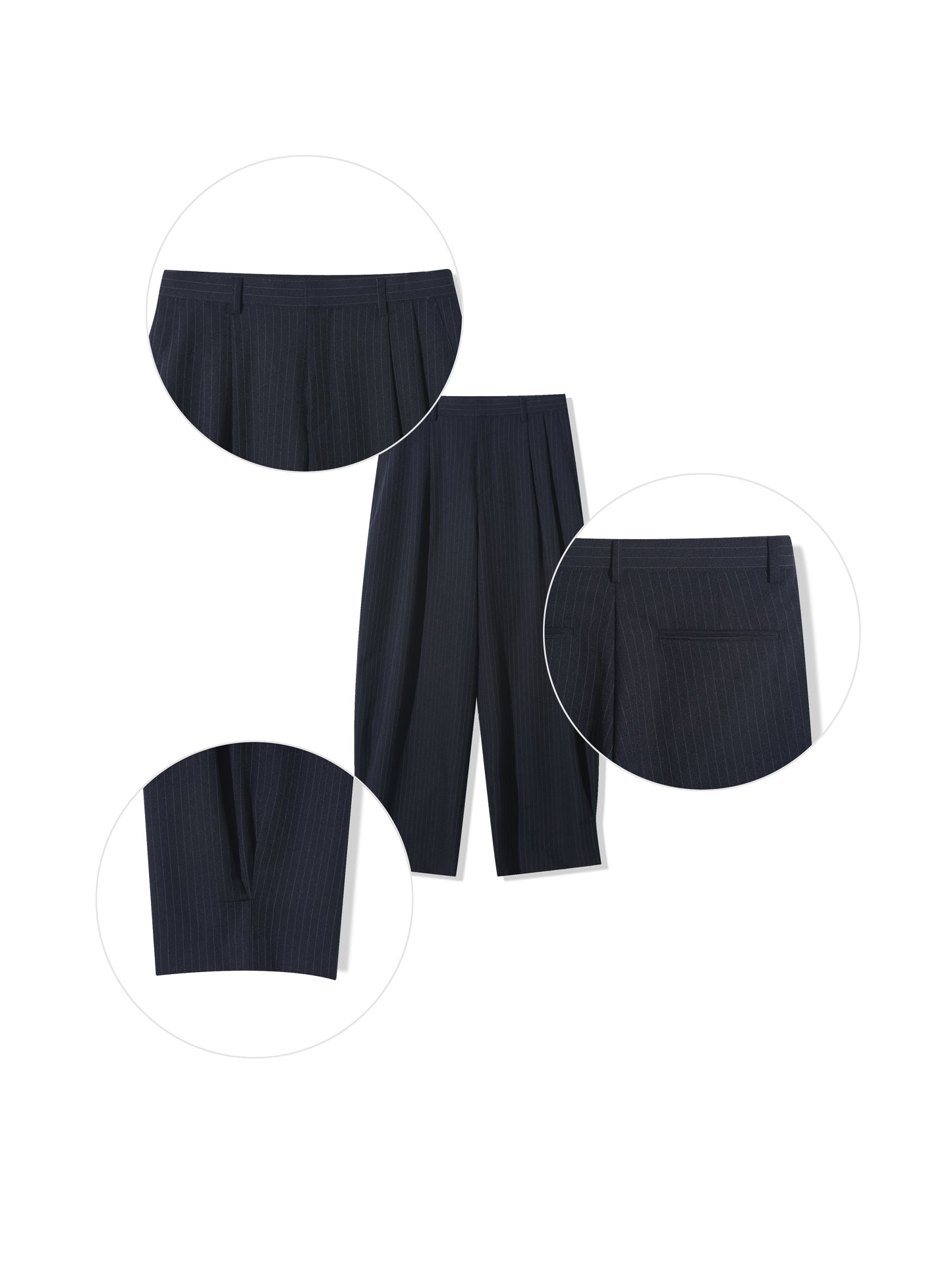 繊細なピンストライプが特徴的な「ルエン ストライプパンツ」。