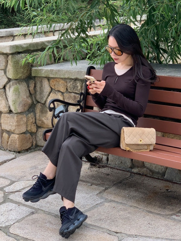 - スラックス+ローファーで上品な抜け感のある大人カジュアル。