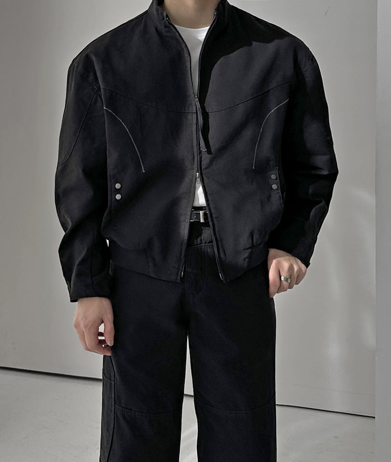 Curved Line Zip Blouson - Black / Charcoal