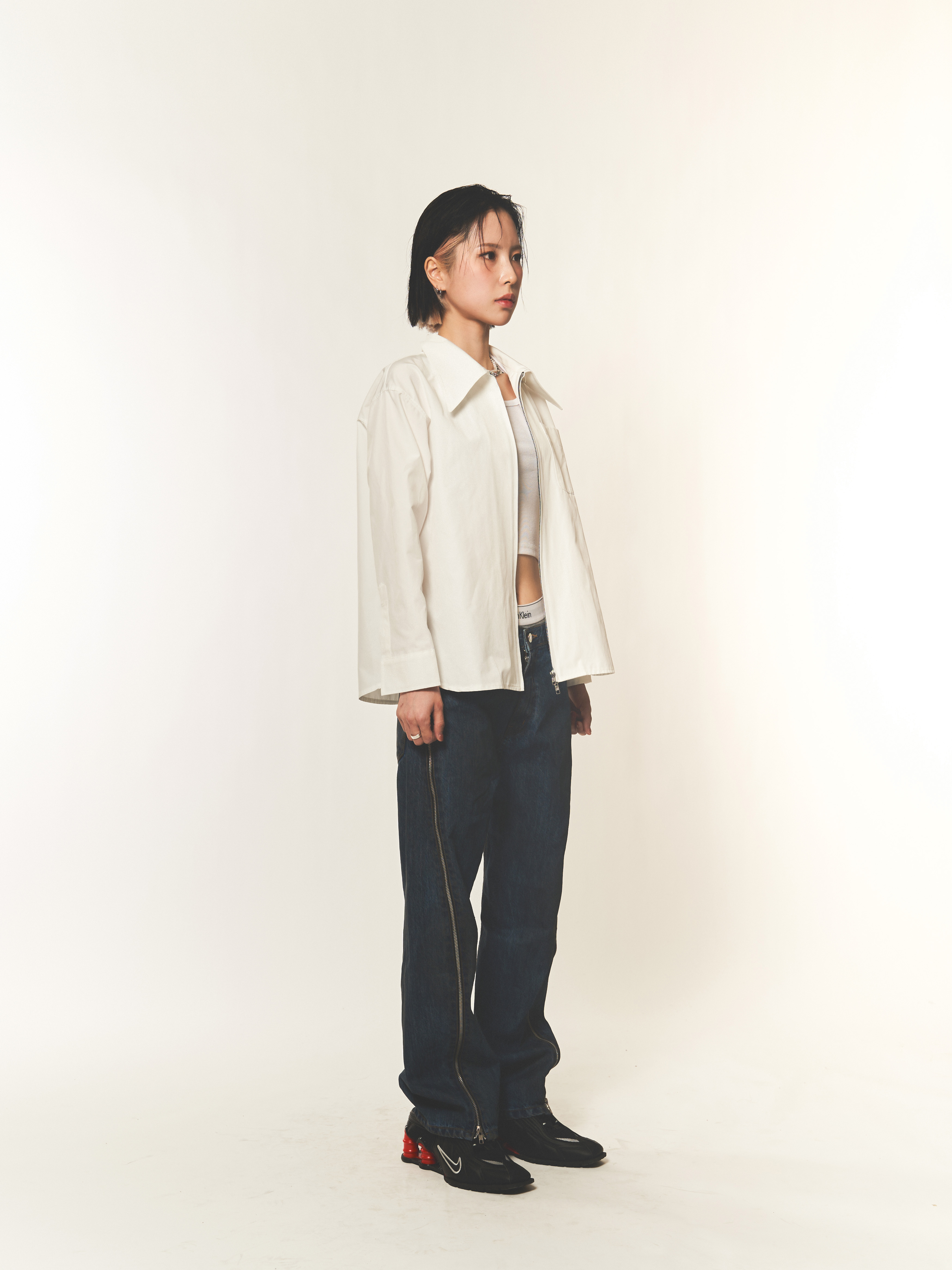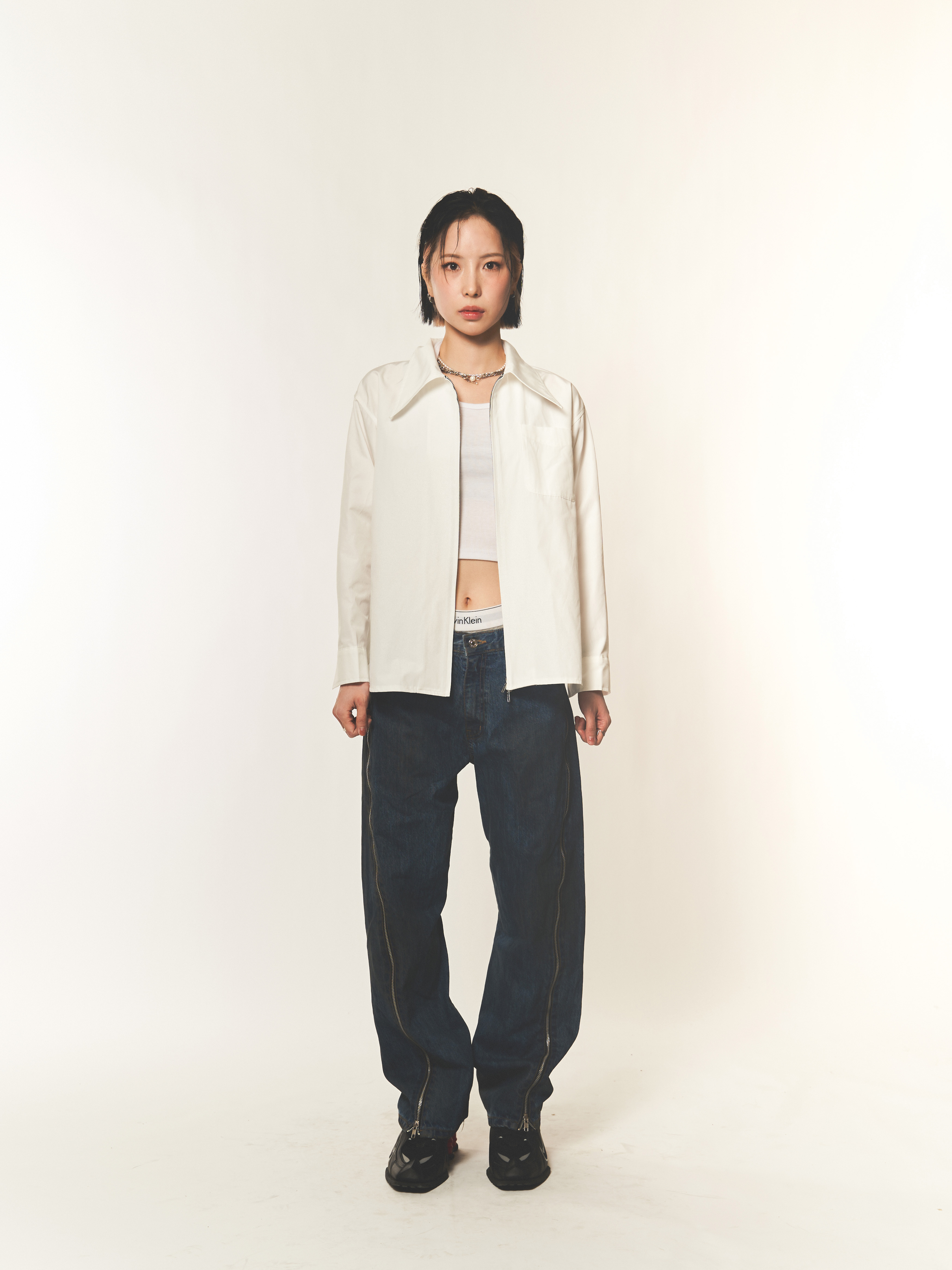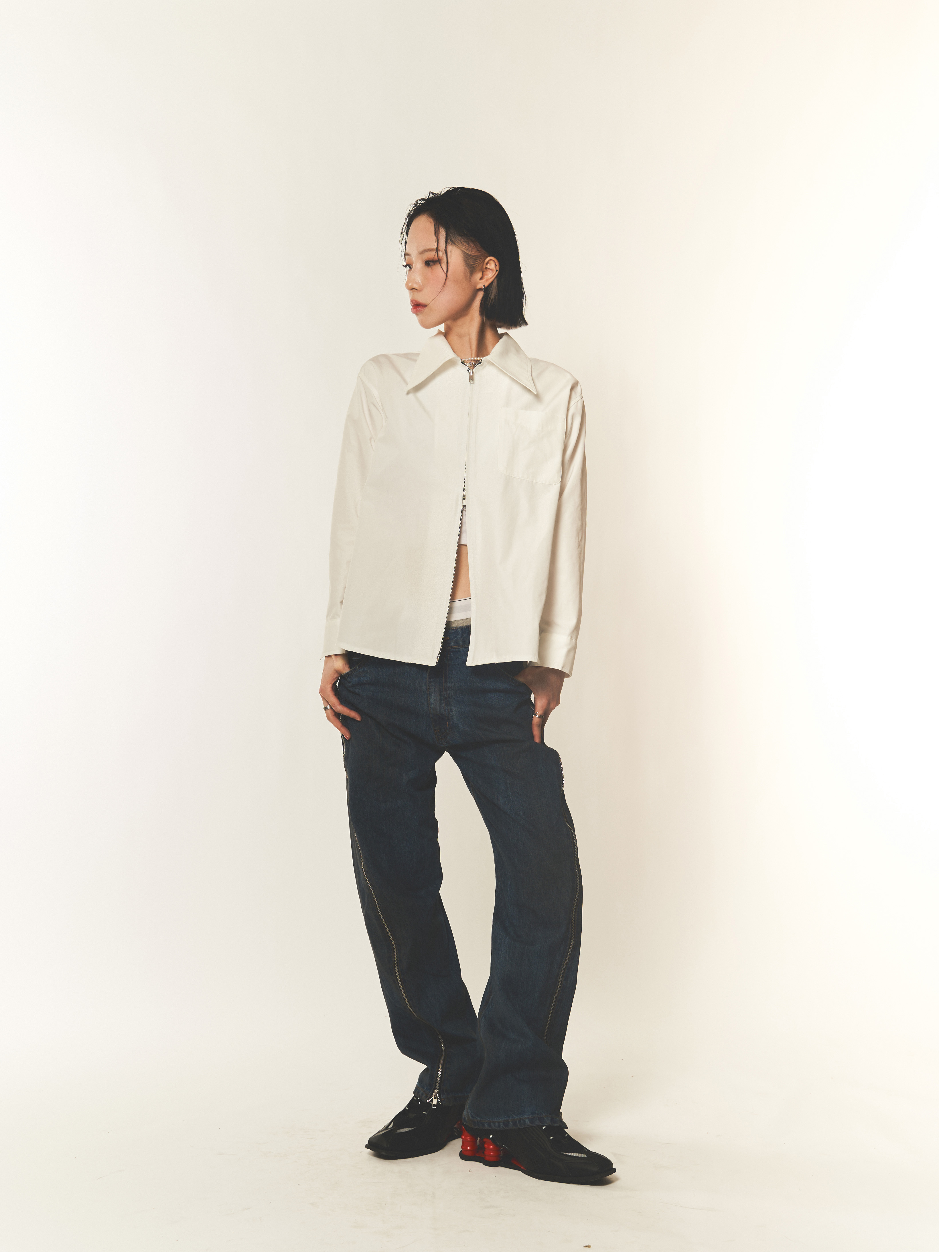 【MOMMANWA モンマンワ】BIG COLLAR 2WAY ZIPPER SHIRT (FOR WOMEN)