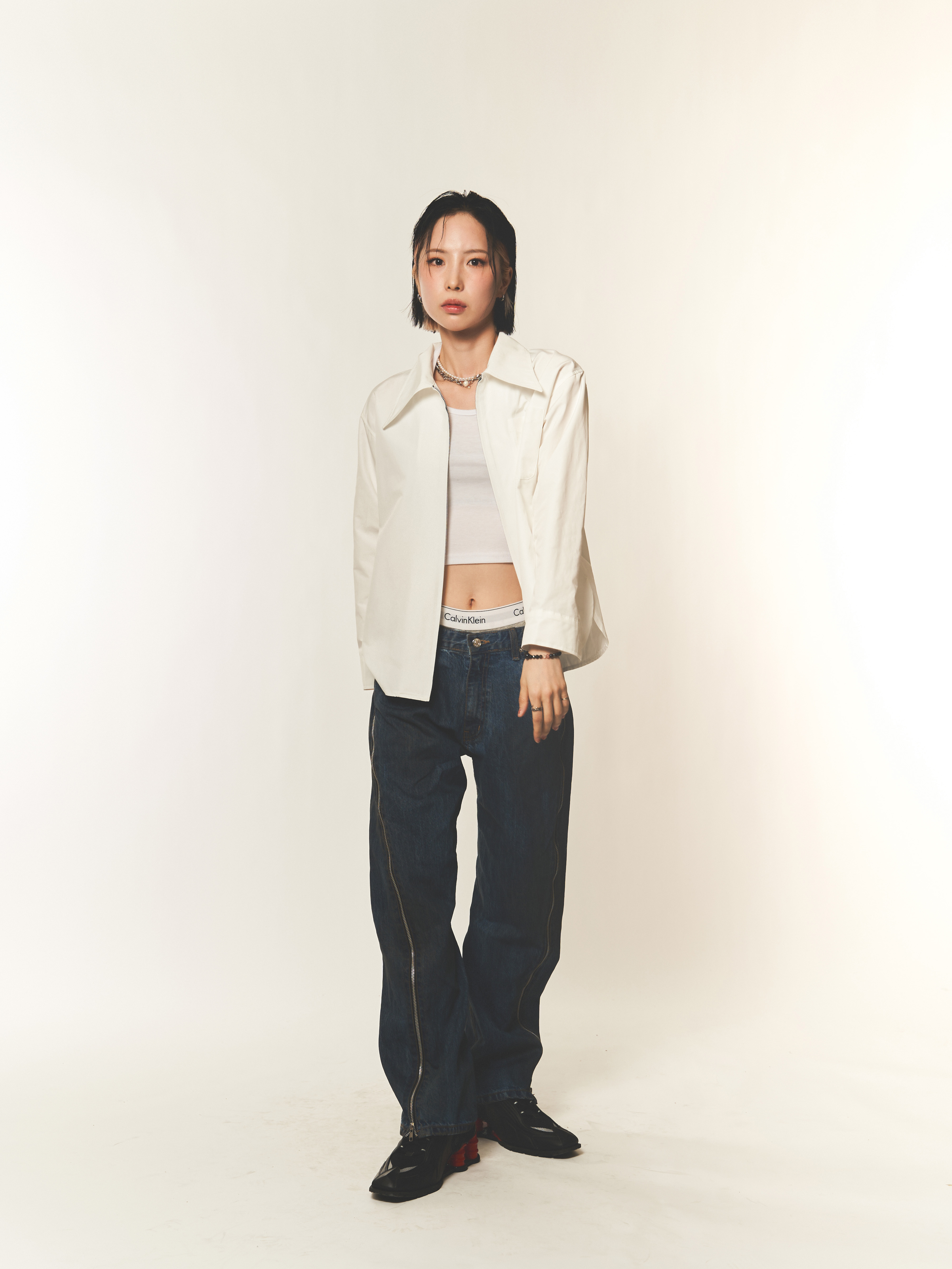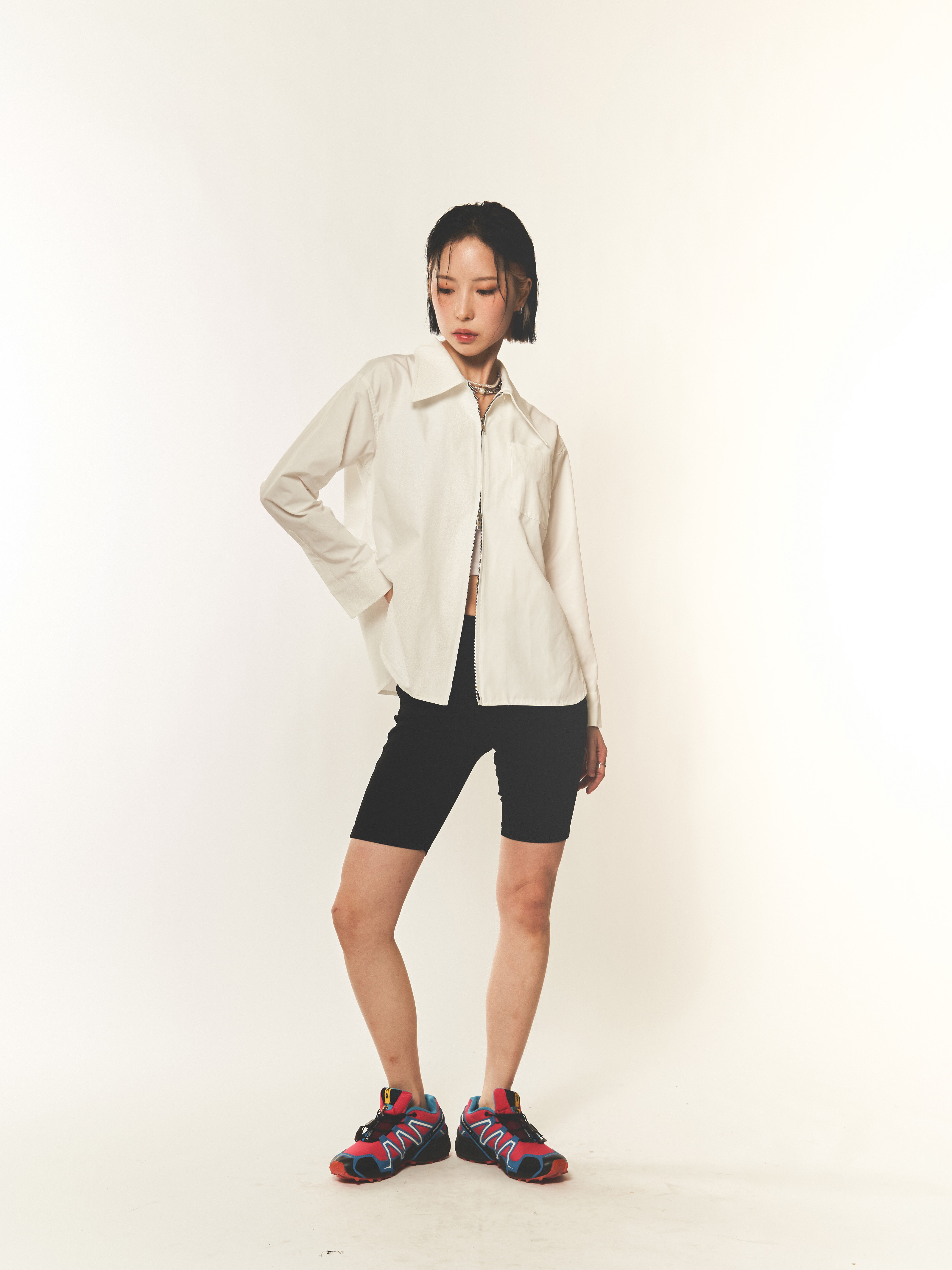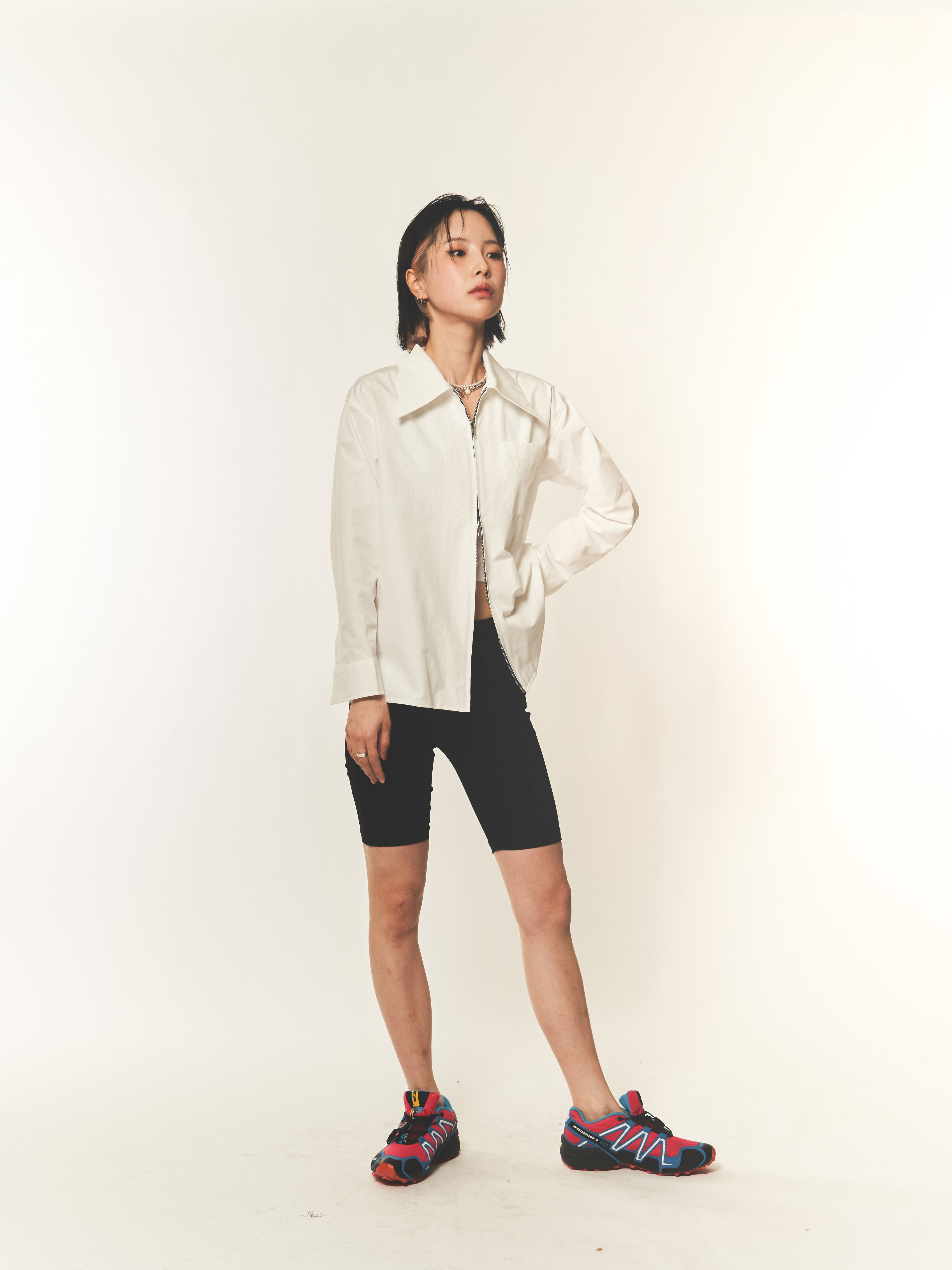 【MOMMANWA モンマンワ】BIG COLLAR 2WAY ZIPPER SHIRT (FOR WOMEN)