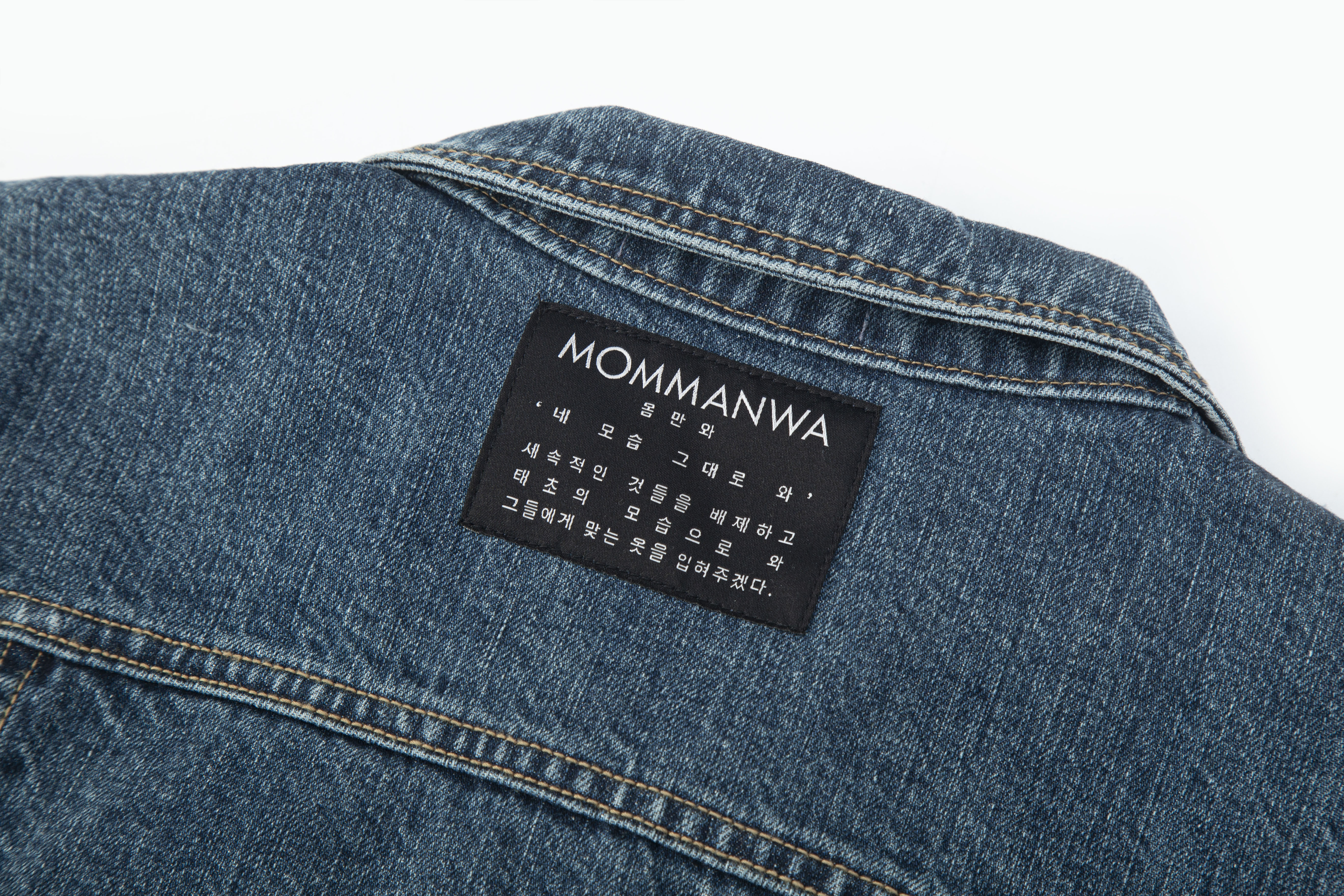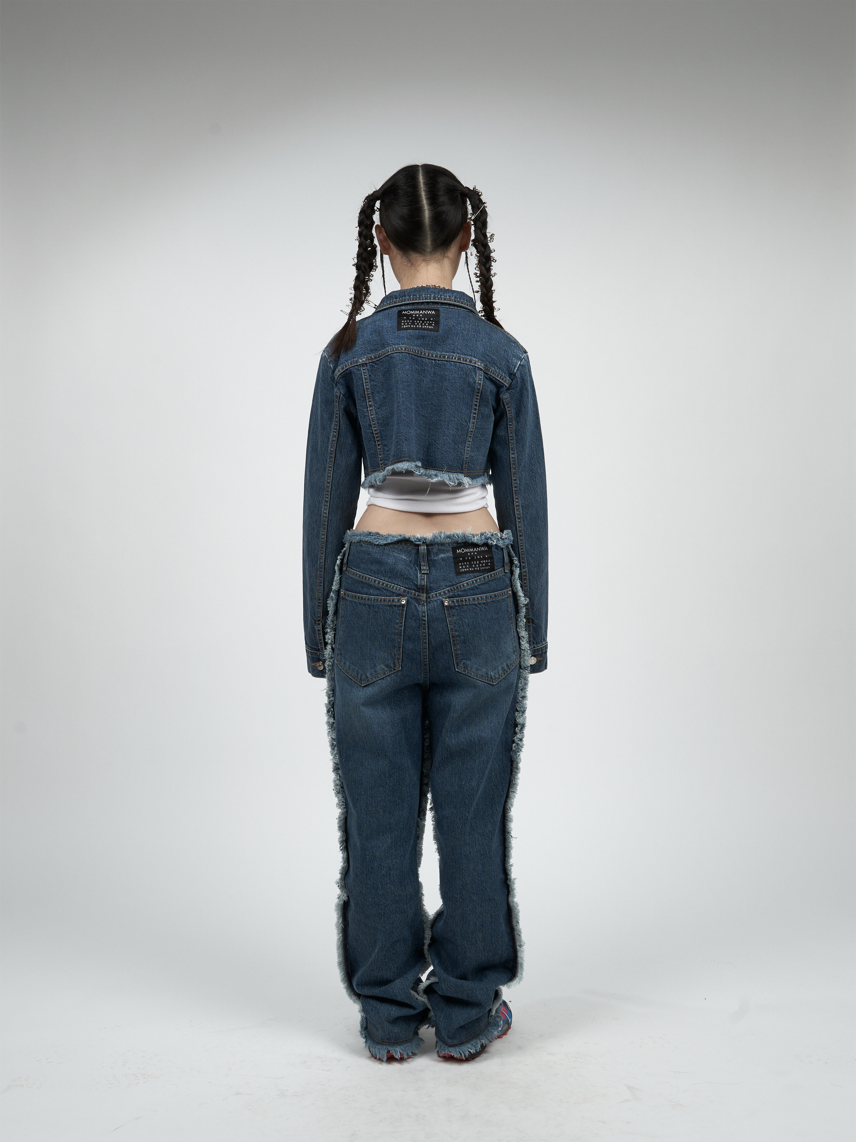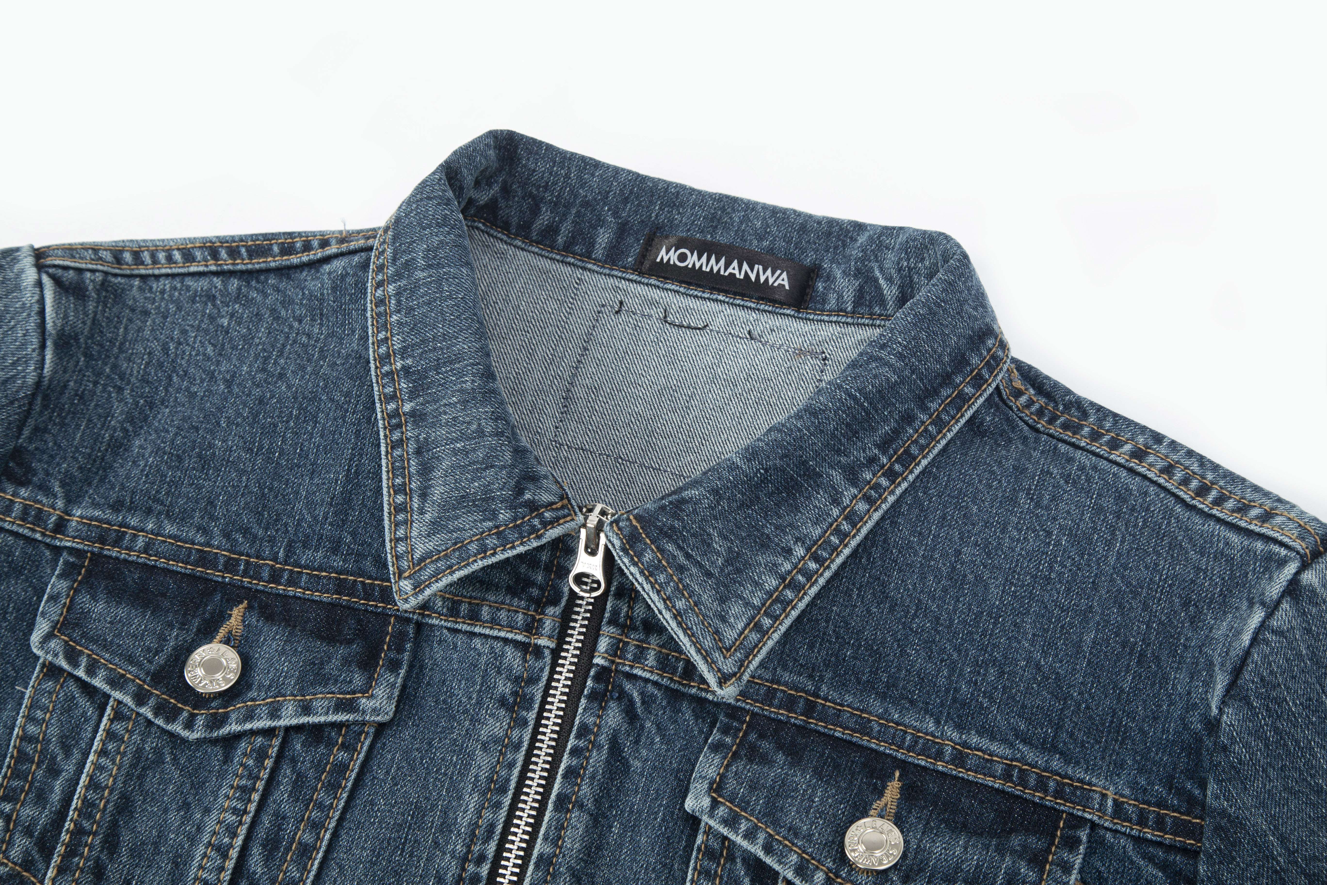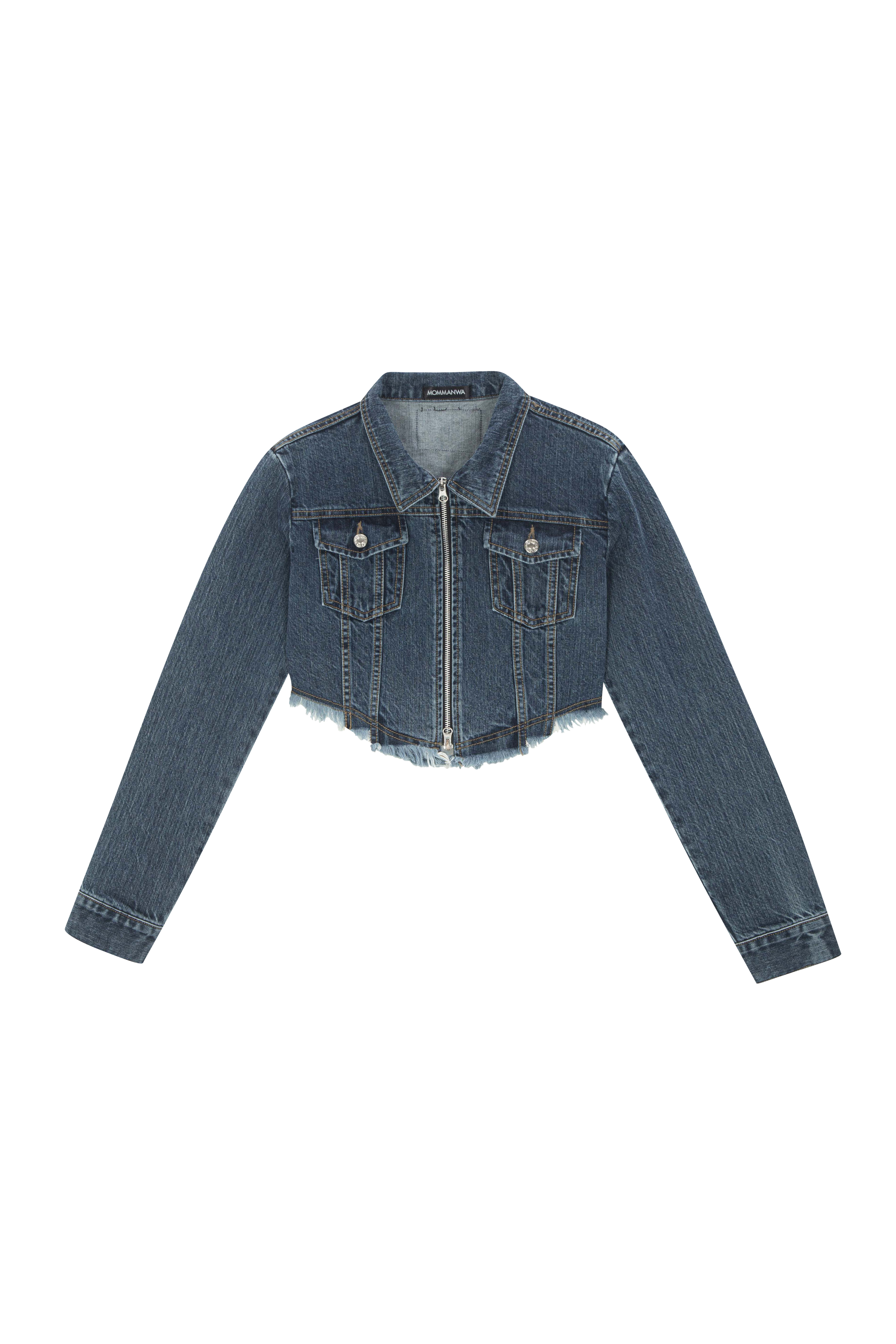 【MOMMANWA モンマンワ】DIAGONAL CROP DENIM JACKET (BLUE)
