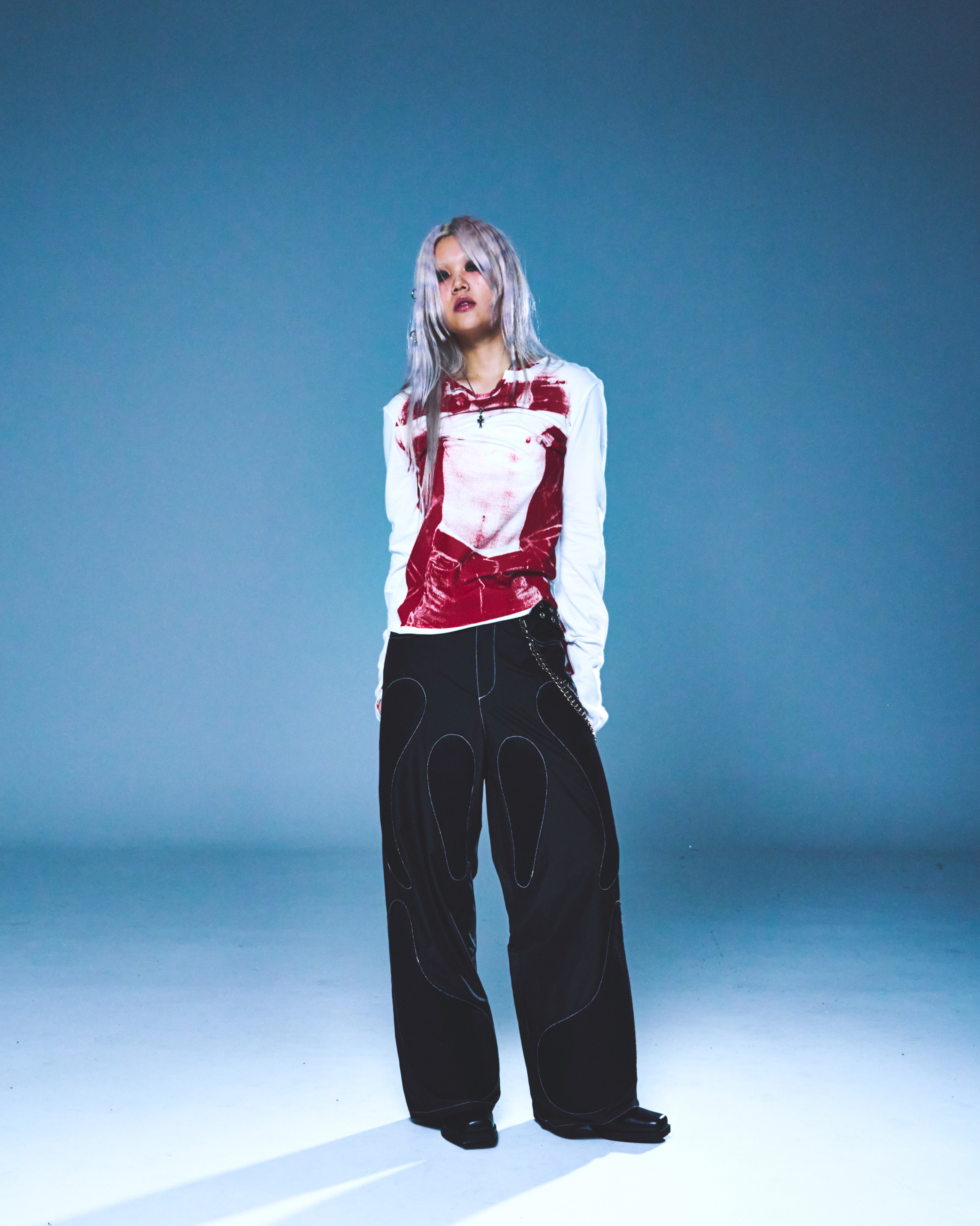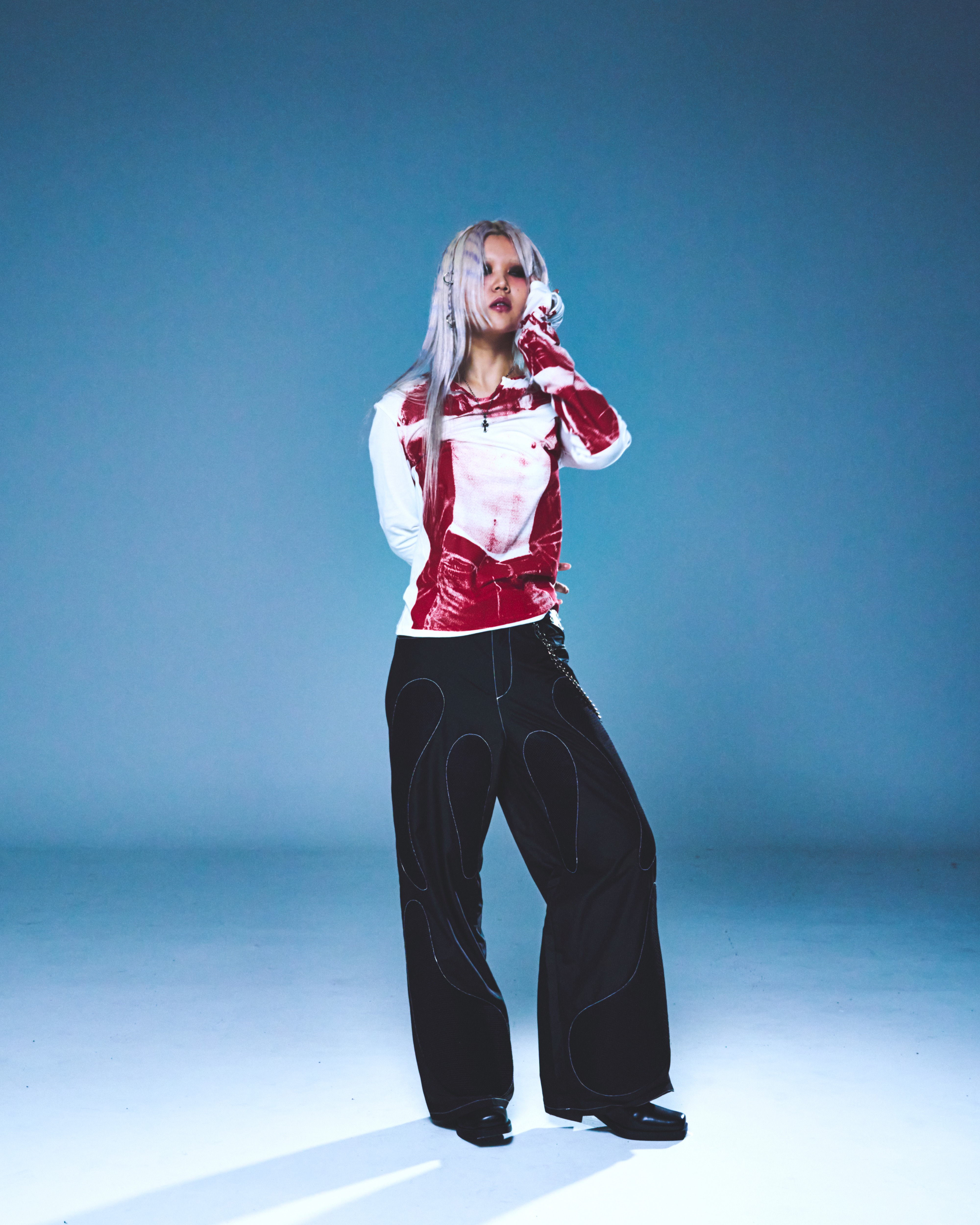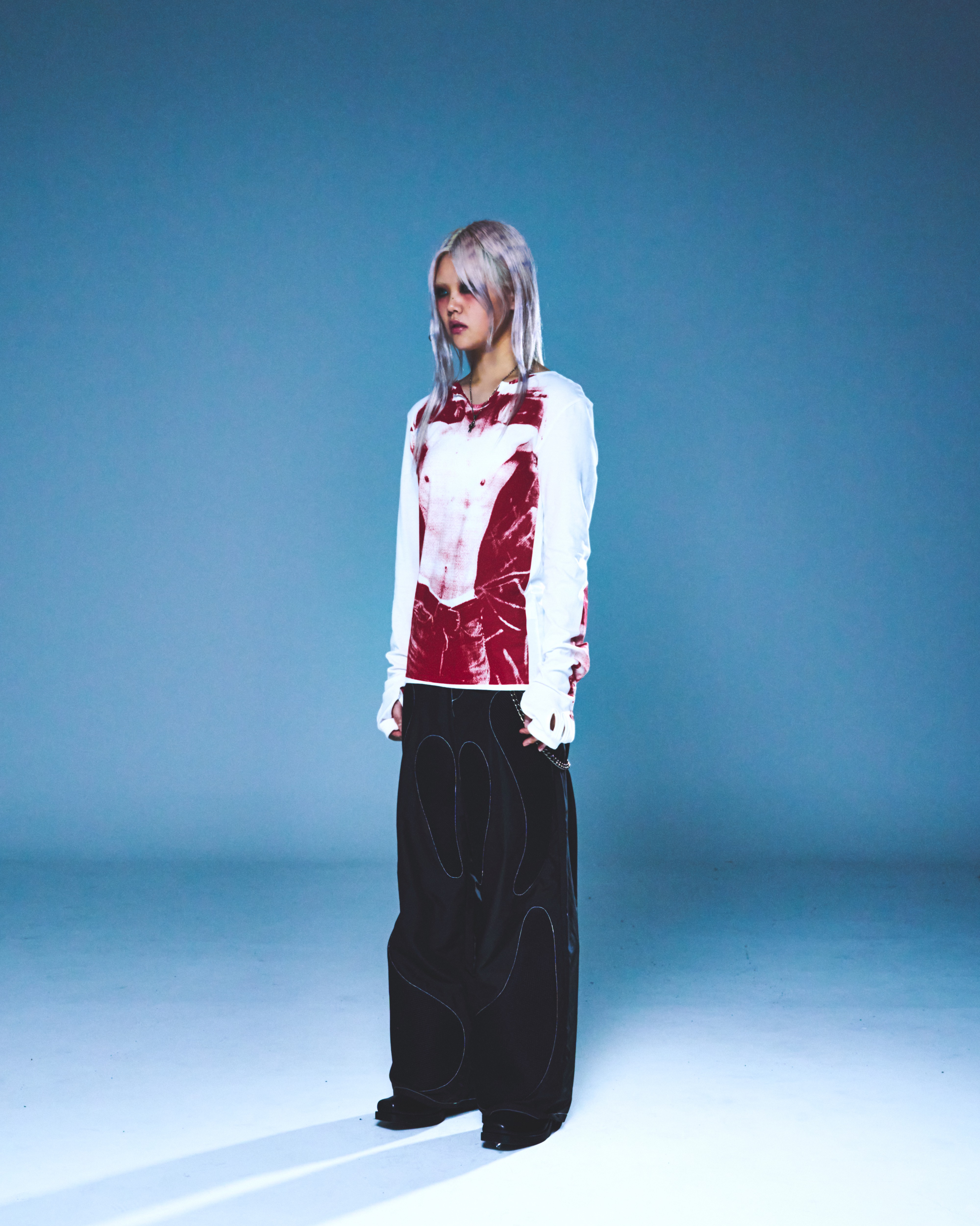 伸縮性の良い素材を使用し、タイトなフィット感で演出できるように