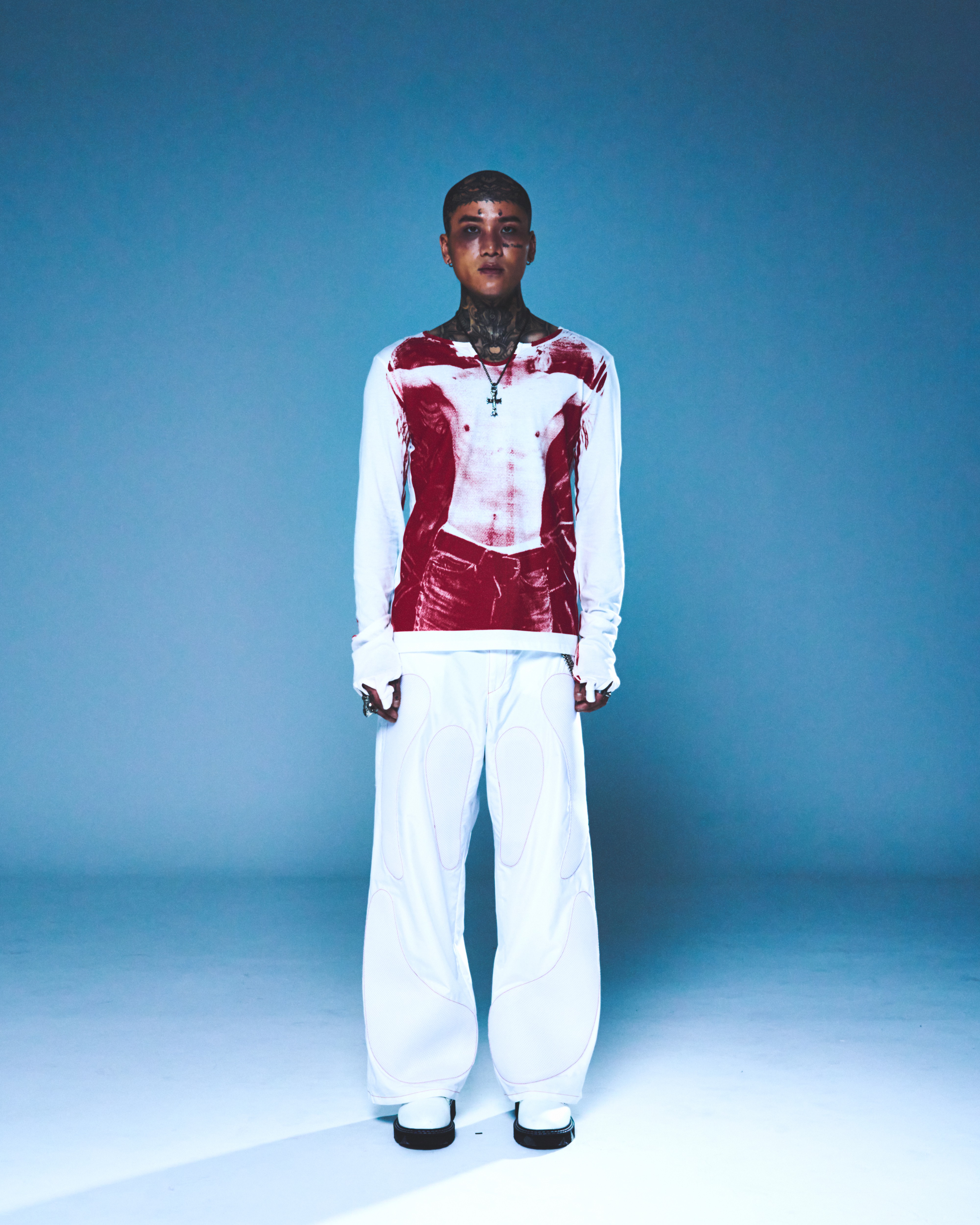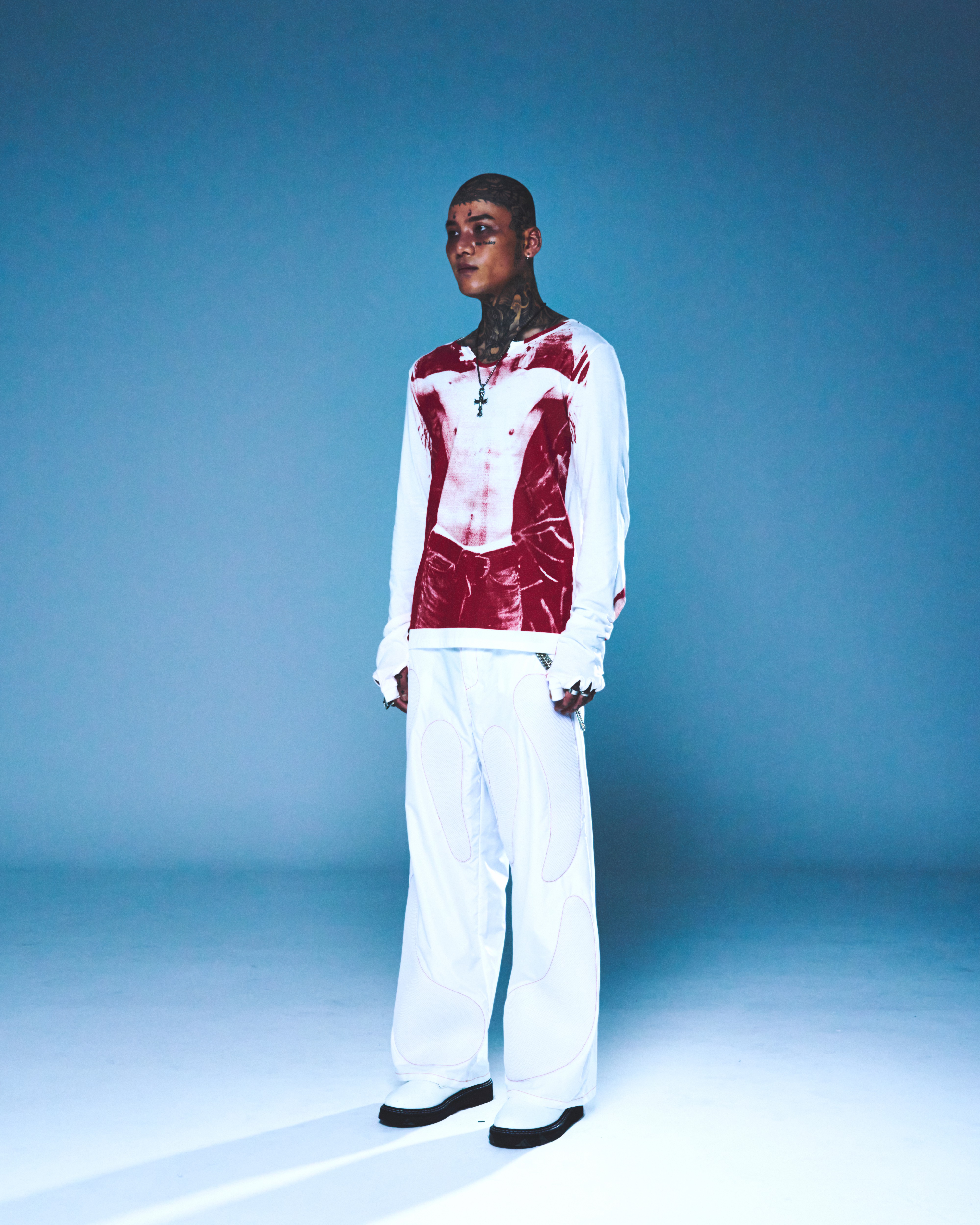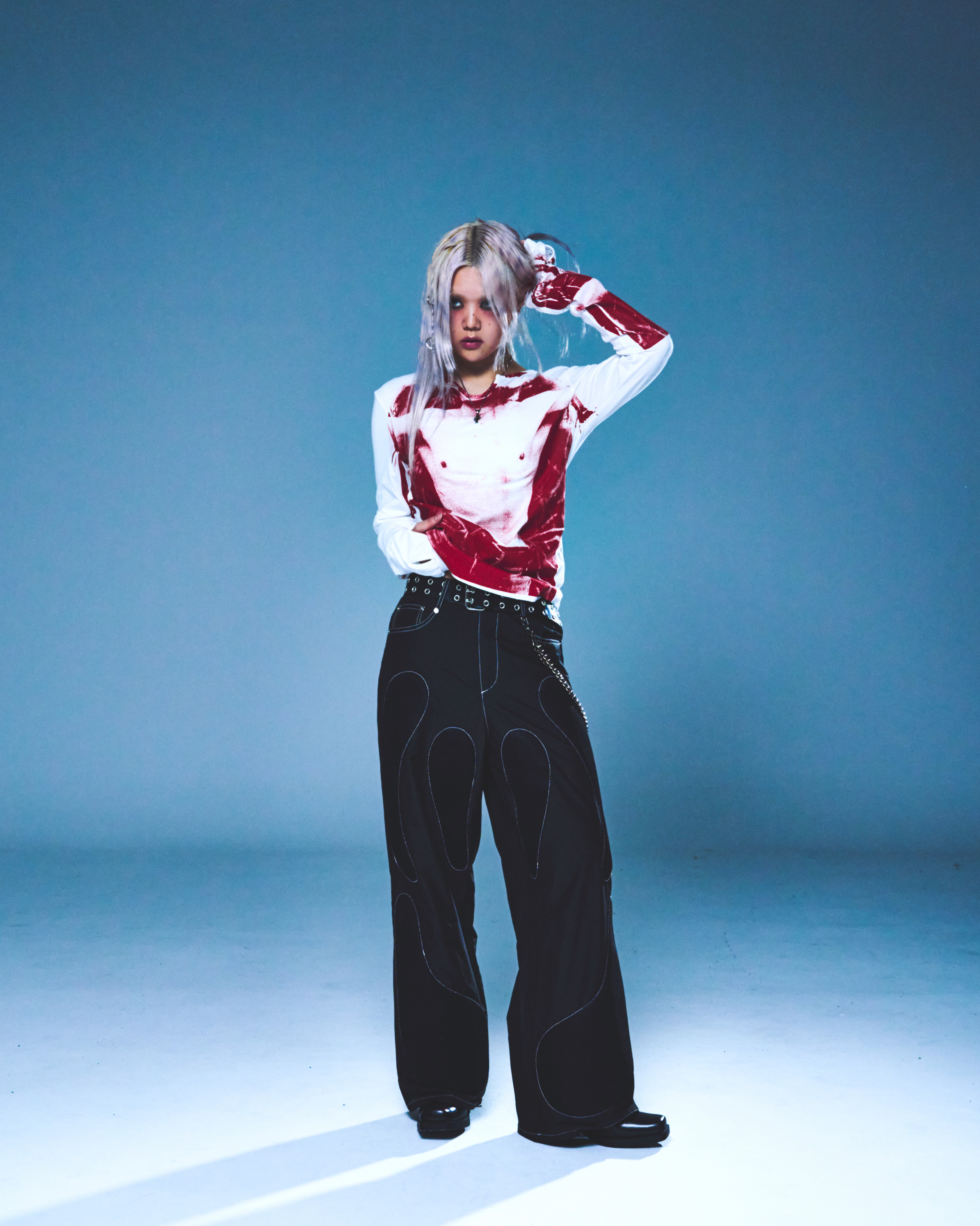 伸縮性の良い素材を使用し、タイトなフィット感で演出できるように
