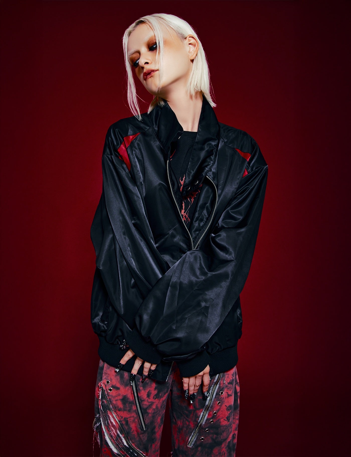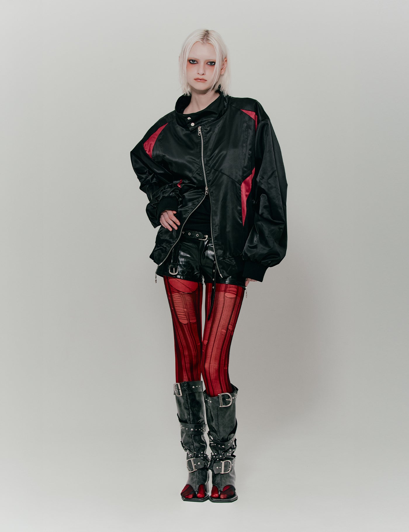 オーバーサイズ バルーンフィット バイカージャケット -ブラック